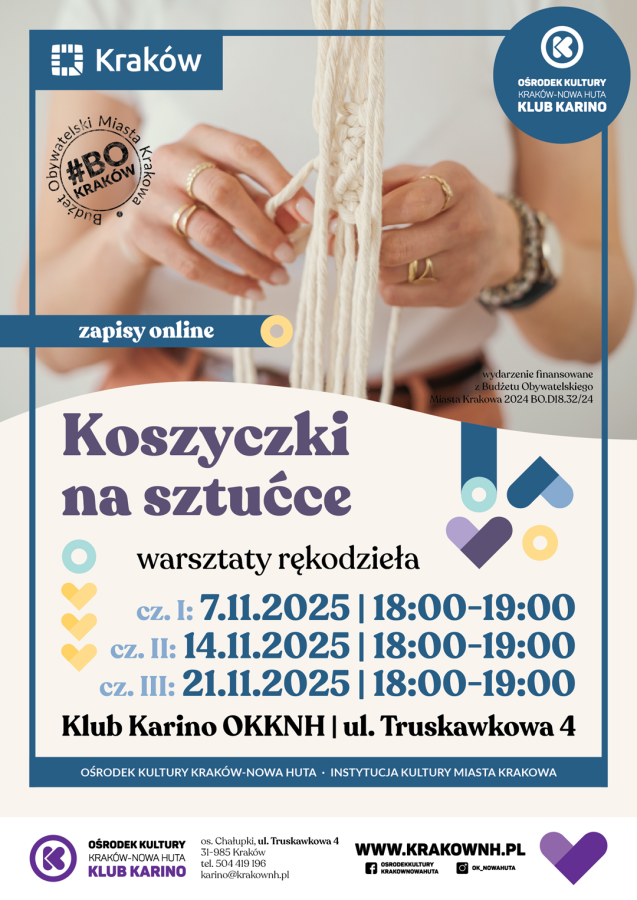Zapraszamy na kreatywne warsztaty, podczas których zostaną wykonane własnoręcznie stylowe makramowe koszyczki na sztućce. To idealna ozdoba na stół lub pomysł na oryginalny prezent dla bliskiej osoby.