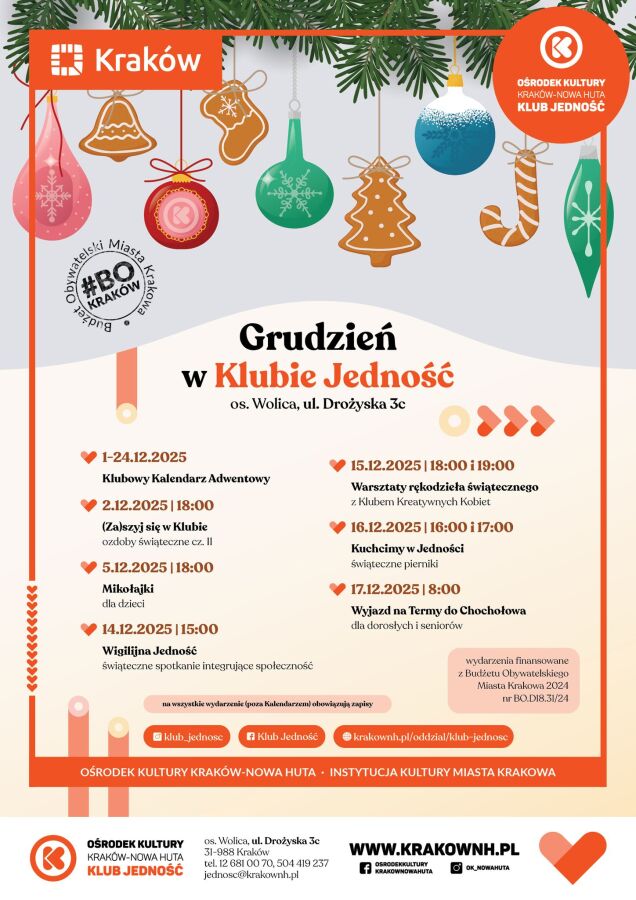 16.12.2025, 16:00 i 17:00 – Kuchcimy w Jedności: świąteczne pierniki