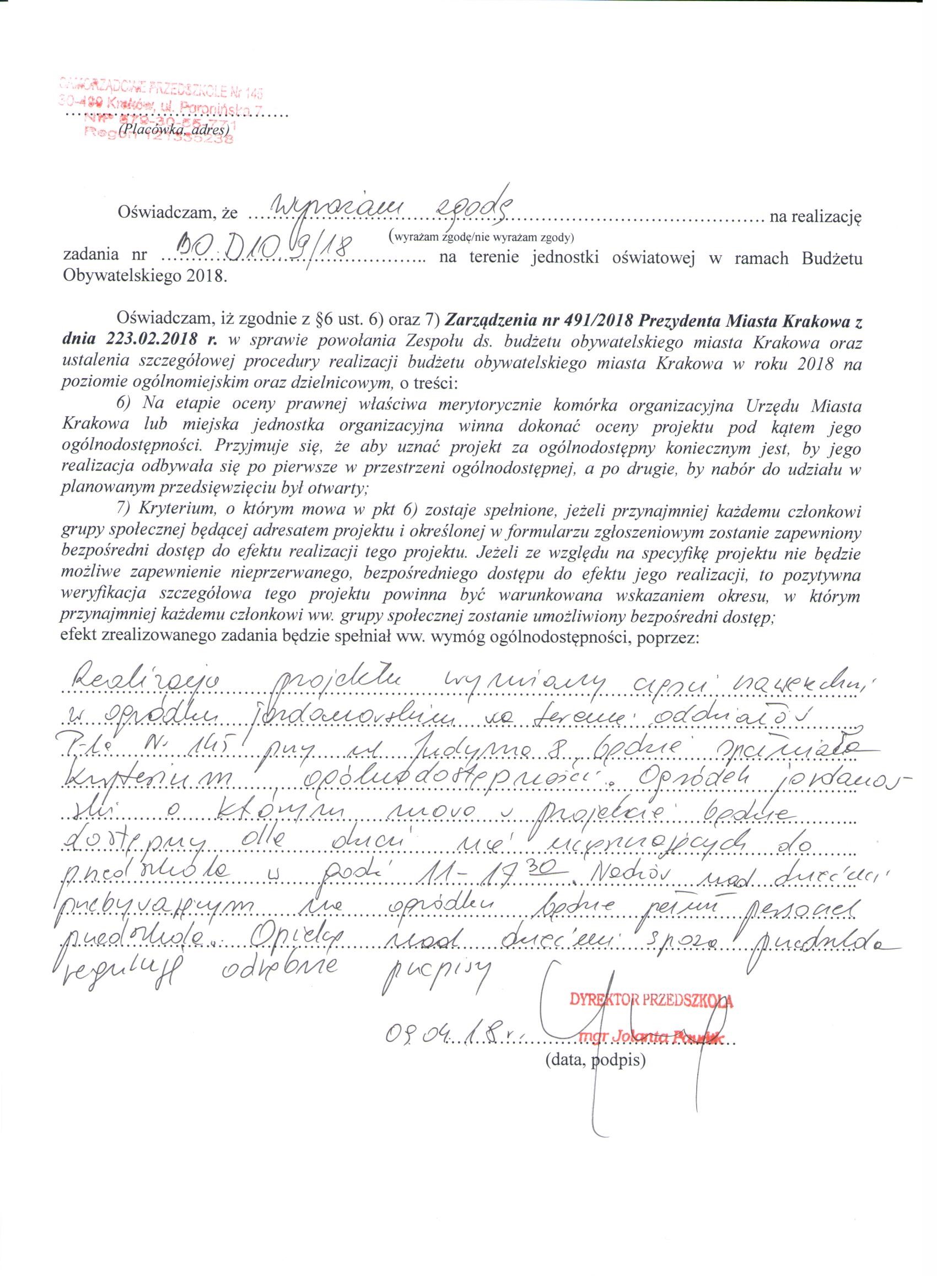 Edycja Budżet Obywatelski 2018 Projekt lokalny - Dzielnica X Realizacja projektu odbywać się będzie w przestrzeni ogólnodostępnej.