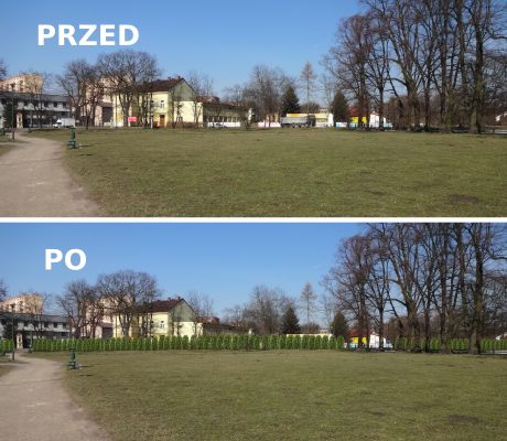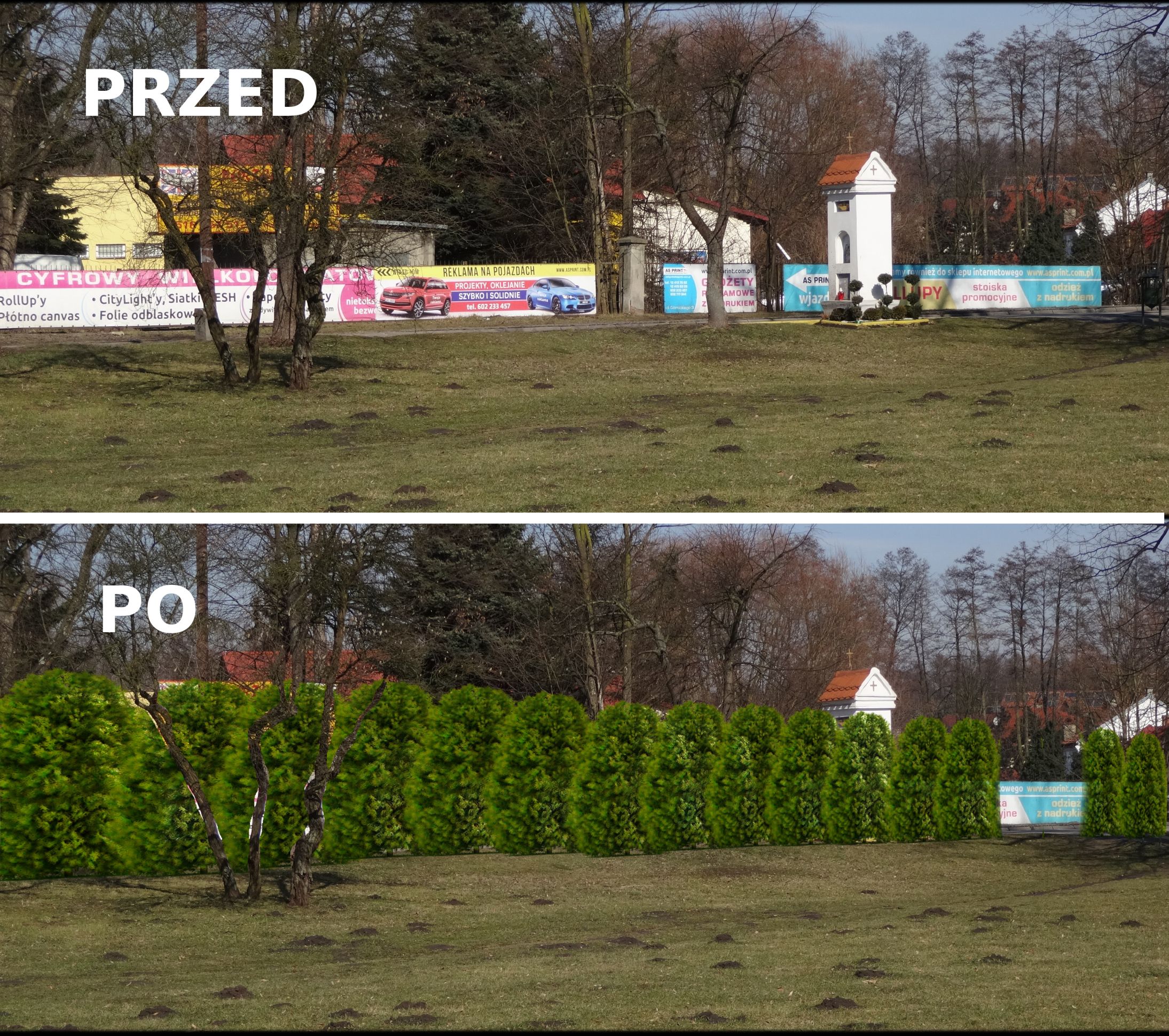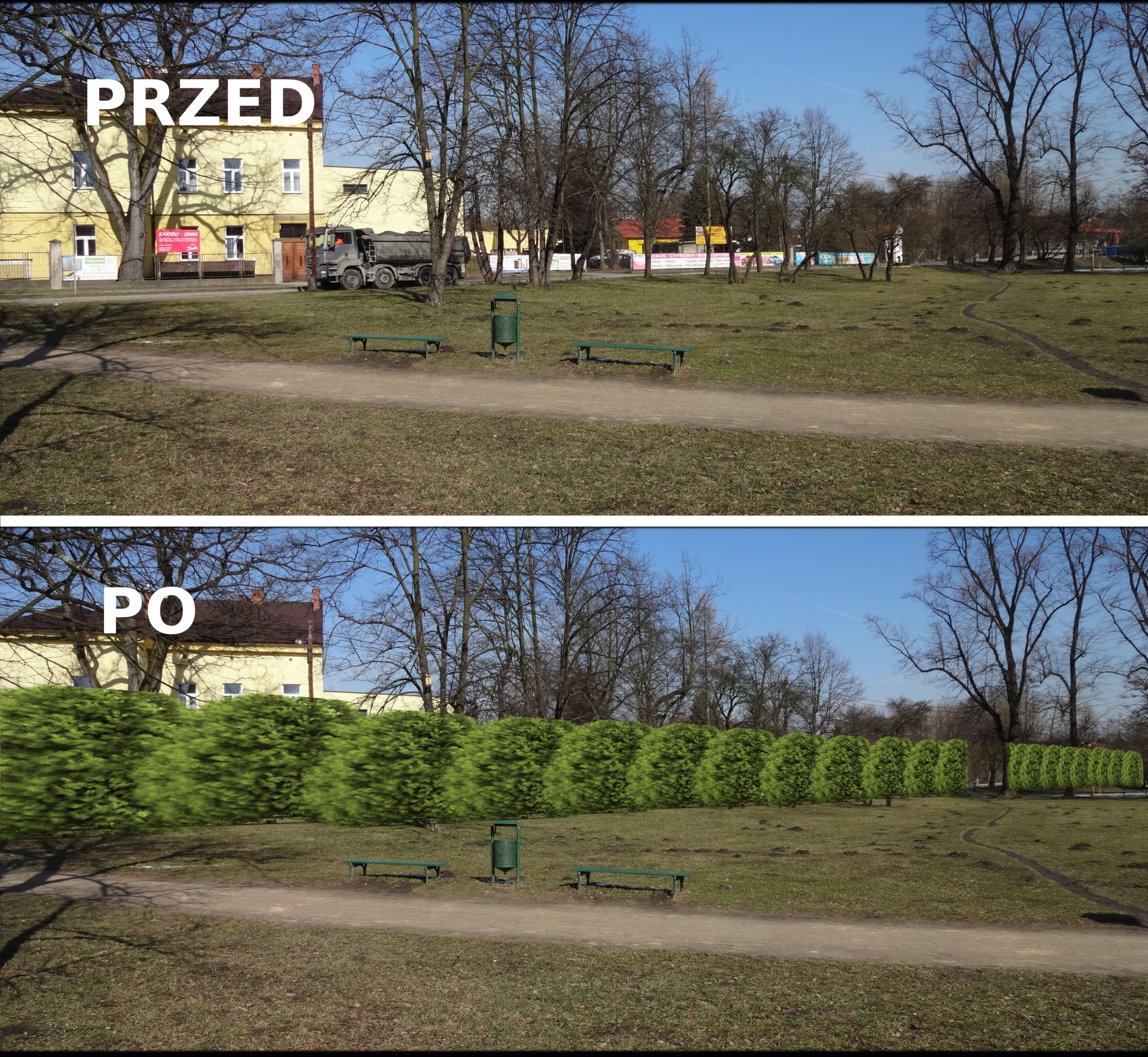 - Optyczne zamknięcie przestrzeni parku miłą dla oka roślinnością zamiast krzykliwymi i nieestetycznymi bannerami reklamowymi po przeciwnej stronie ul. Górnickiego