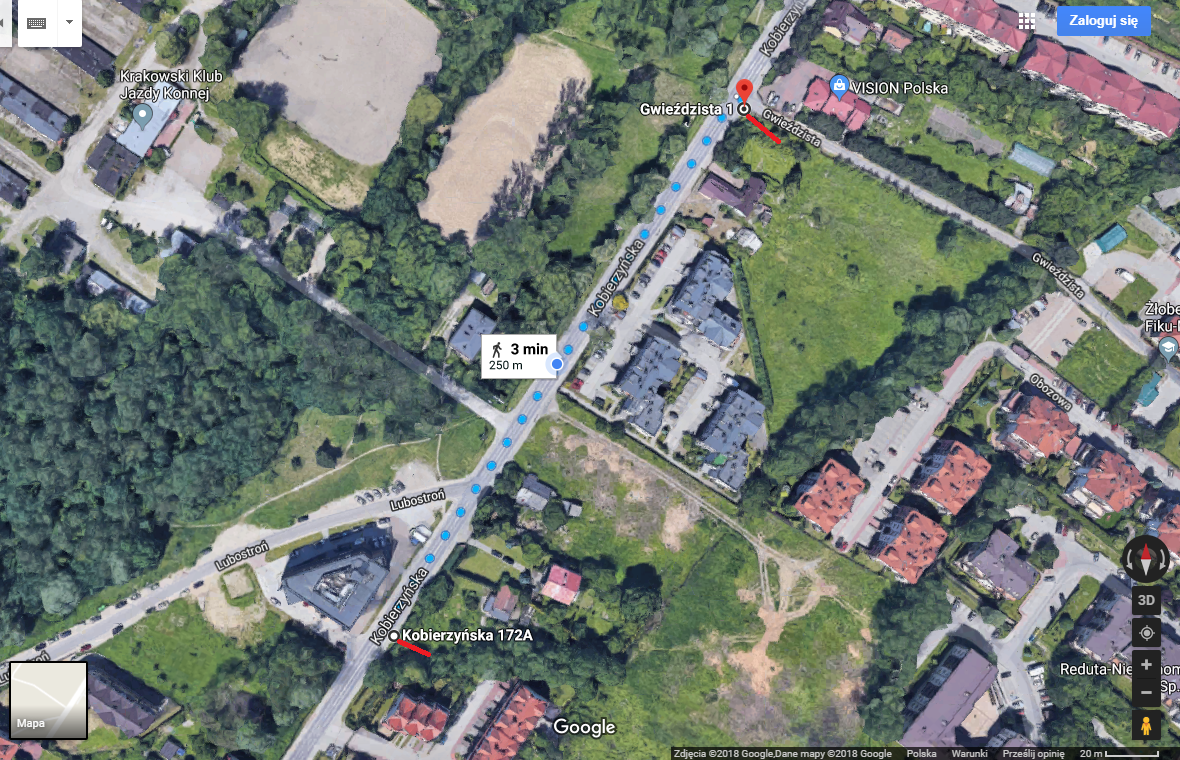 Dodatkowe lokalizacje: Odcinek ul. Kobierzyńskiej od skrzyżowania z ul. Gwieździstą do pasów dla pieszych w pobliżu skrzyżowania z ul. Lubostroń.