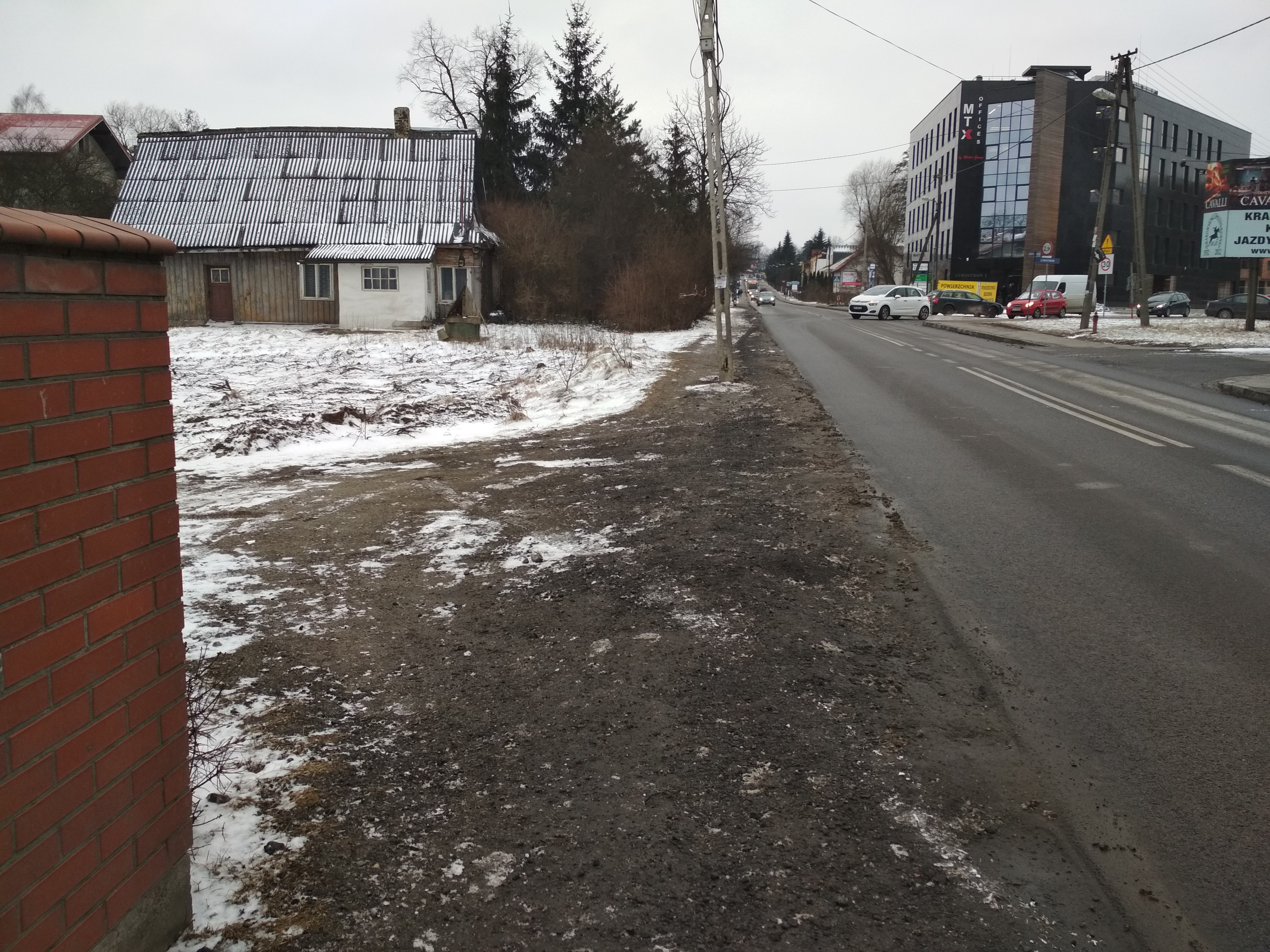 Utworzenie chodnika dla pieszych wzdłuż ul. Kobierzyńskiej, na odcinku między skrzyżowaniem z ul. Gwieździstą a ul. Lubostroń w celu ułatwienia dotarcia do przystanku autobusowego Lubostroń i dojścia do SP Nr 53.