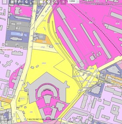 1. Mapa projektu REWITALIZACJI PARKU KLEPARSKIEGO i mapa własności, Park Kleparski (źródło: UMK, obserwatorium.um.krakow.pl)