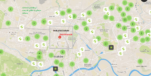 4. Brak placy zabaw Wrocławska/Kamienna/Nowy Kleparz (źródło: ZZM, krakowwzieleni.pl/co/)