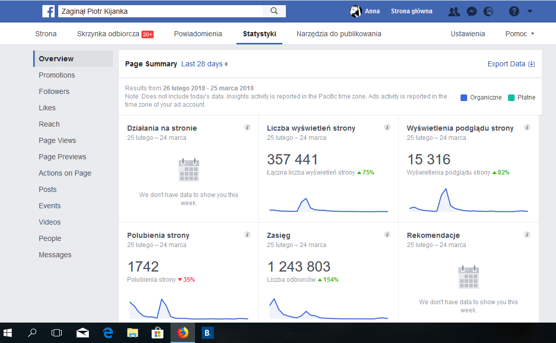 Na koniec pragniemy dodać, że planujemy szeroko zakrojoną akcję promocyjną w mediach społecznościowych. Naszym głównym kanałem komunikacji będzie fanpage na Facebooku, dzięki któremu zamierzamy dotrzeć do wszystkich mieszkańców Krakowa korzystających z tego medium. Projekt, o którego realizację występujemy został zainicjowany wydarzeniem, na rzecz którego powstał profil na Facebooku "Zaginął Piotr Kijanka". Przez 2 miesiące zebraliśmy na tej stronie niemal 6 tysięcy obserwatorów, a publikowane posty dotarły do ponad 1mln 200 tysięcy osób (patrz: dołączony screen ze statystyk FB).