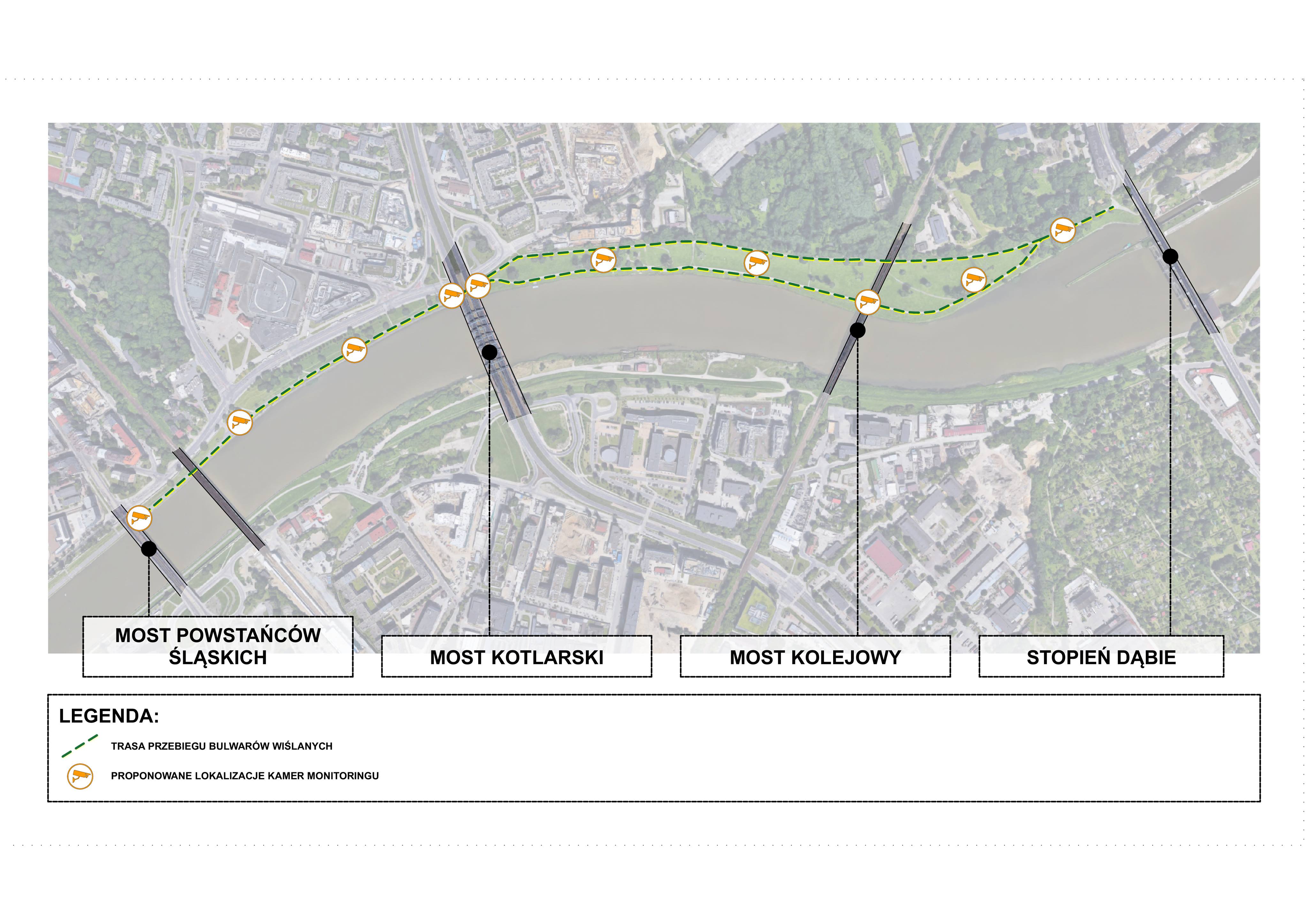 Główna lokalizacja: Monitoring na bulwarach - od mostu Powstańców Śląskich po Most Stoczniowców.