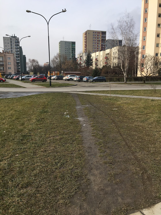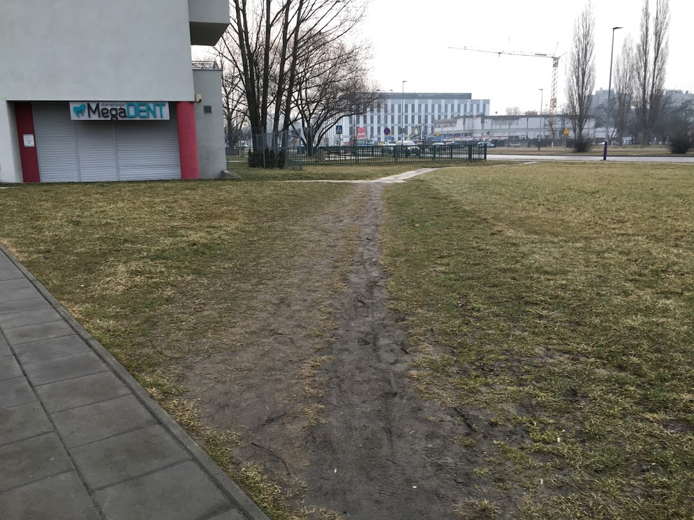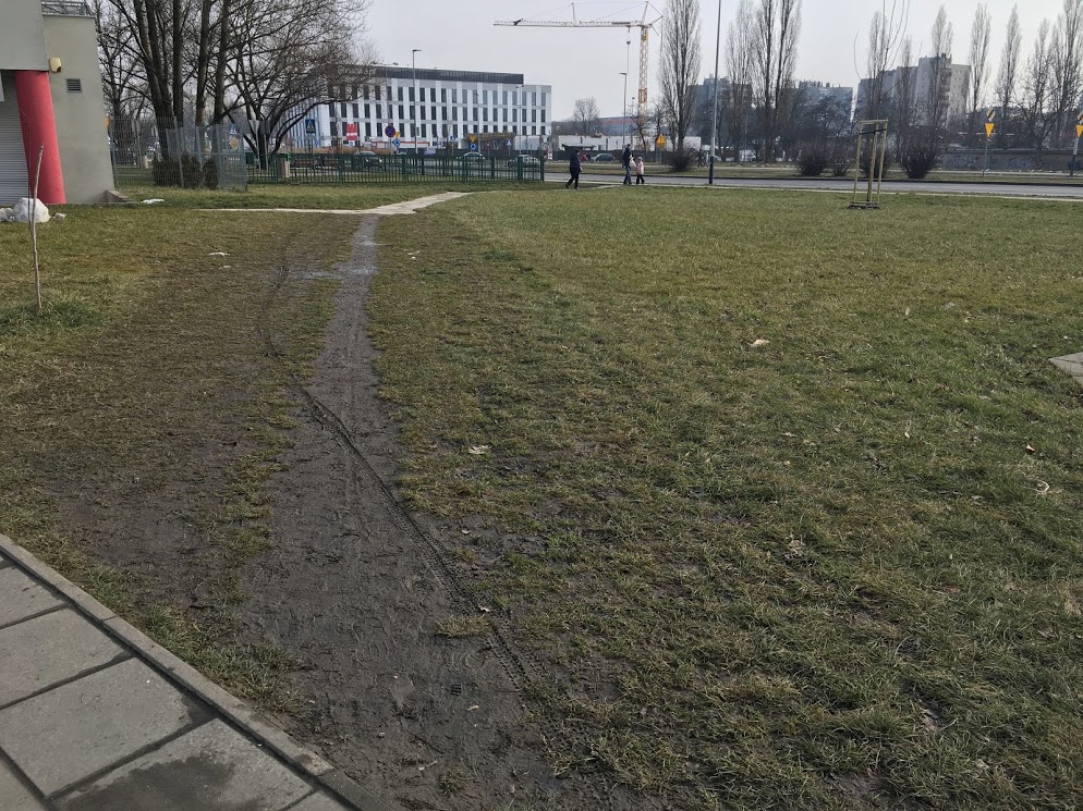 Ta ścieżka to najkrótsza droga z głębi osiedla do tramwaju. Nikt nie jest Pacmanem aby chodził po wyznaczonych drogach skręcając tylko pod kątem prostym.