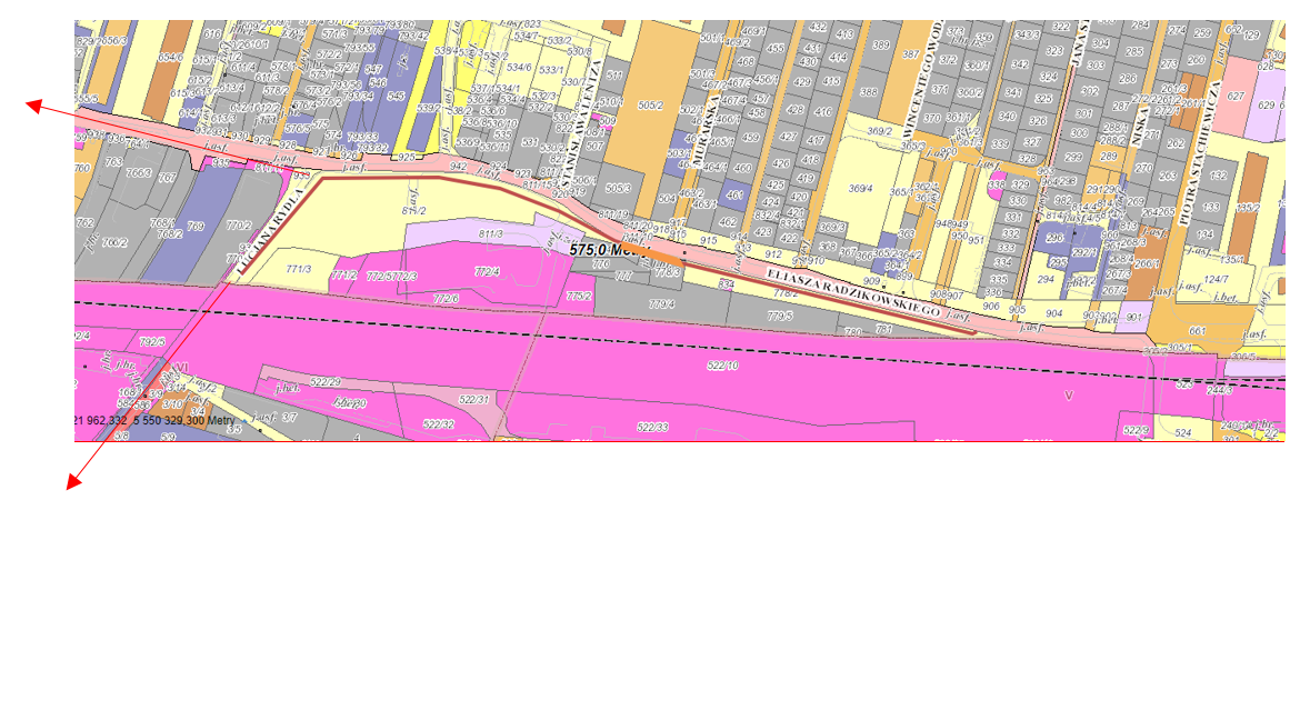 Ścieżka ma przebiegać od skrzyżowania z ul. Rydla wzdłuż ul. Radzikowskiego z wyłączeniem odcinka na którym ruch rowerowy będzie musiał się odbywać w ruchu ogólnym ze względu wąski pas drogowy (działki prywatne nr 811/3, 811/4, 778/3 obr. 41 Krowodrza). I następnie ścieżka rowerowa będzie przebiegać wzdłuż ul. Radzikowskiego do wysokości działki nr 781 obr. 41 Krowodrza).