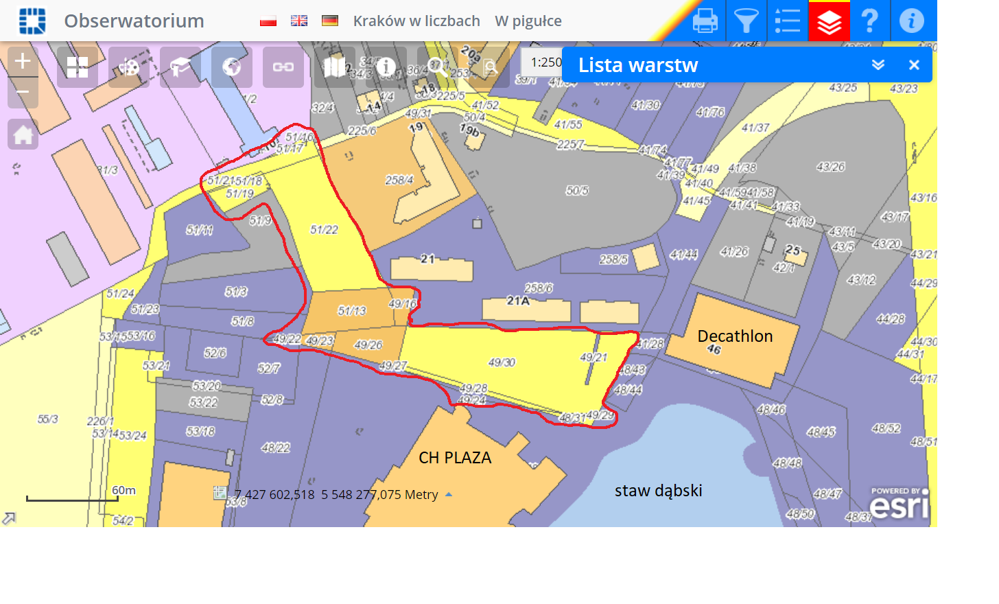 Wniosek budżetu obywatelskiego zakłada wykonanie parku kieszonkowego na działkach 51/22, 51/13, 49/16, 49/26, 49/27, 49/28, 49/29, 49/30, obr. 16 Śródmieście przy CH Plaza i ul. Dąbskiej.