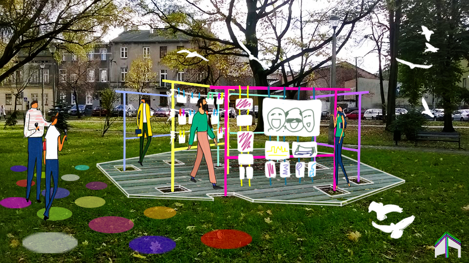 - wprowadzenie kreatywnej przestrzeni do animacji tzn. pomalowanie i przystosowanie znajdujących się w parku trzepaków, tak aby umożliwić tam organizację wszelkiego rodzaju wystaw, zabaw i pikników rodzinnych lub wydarzeń kulturalnych,