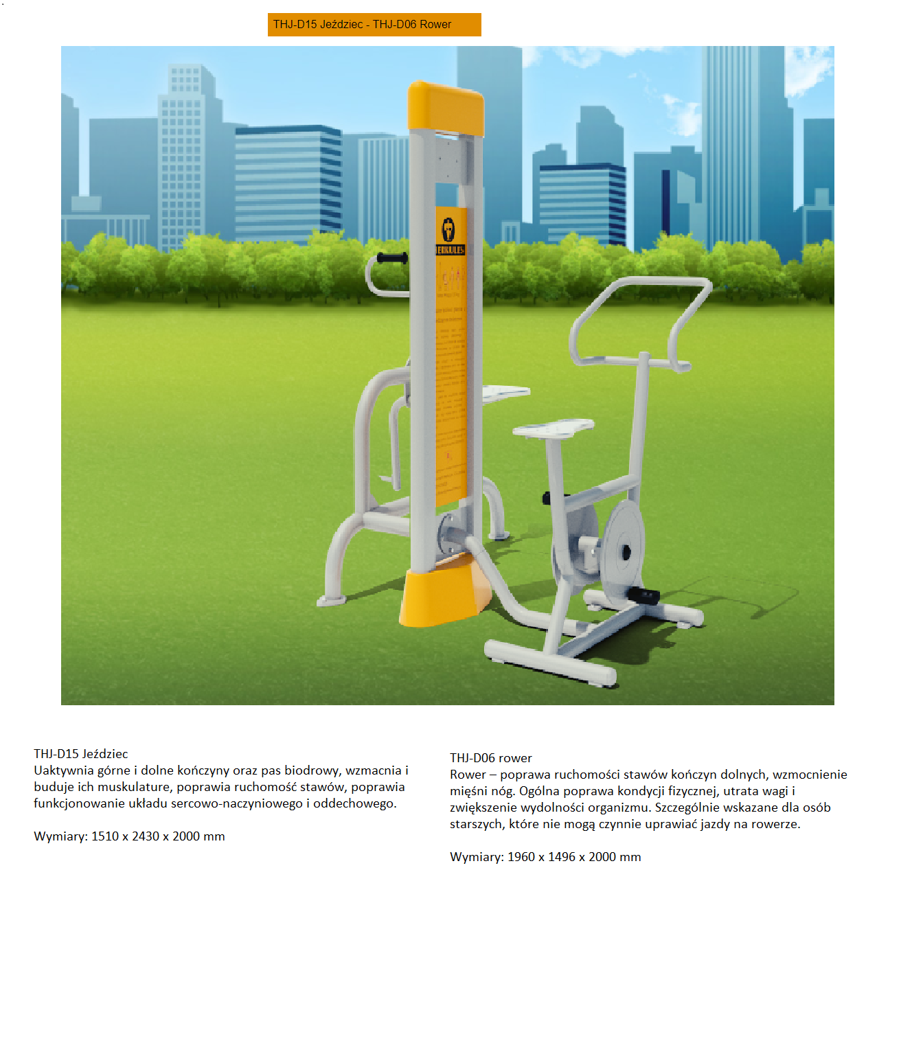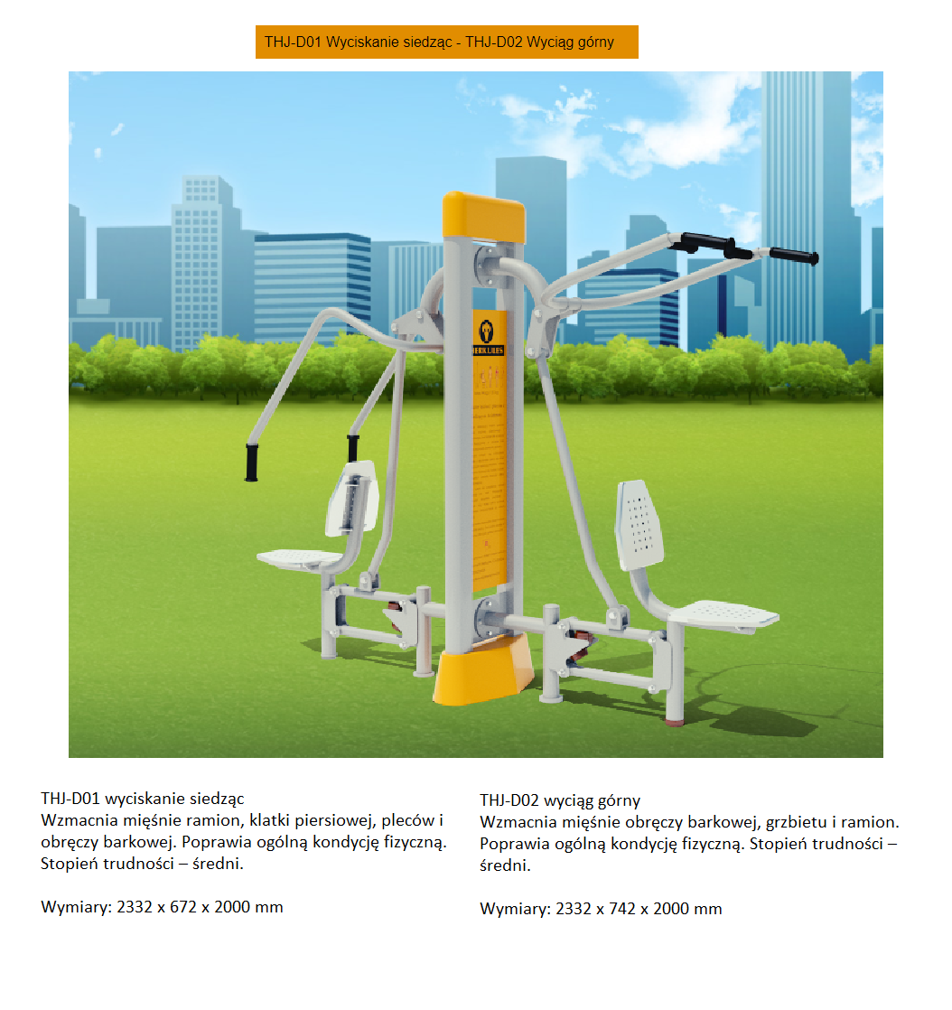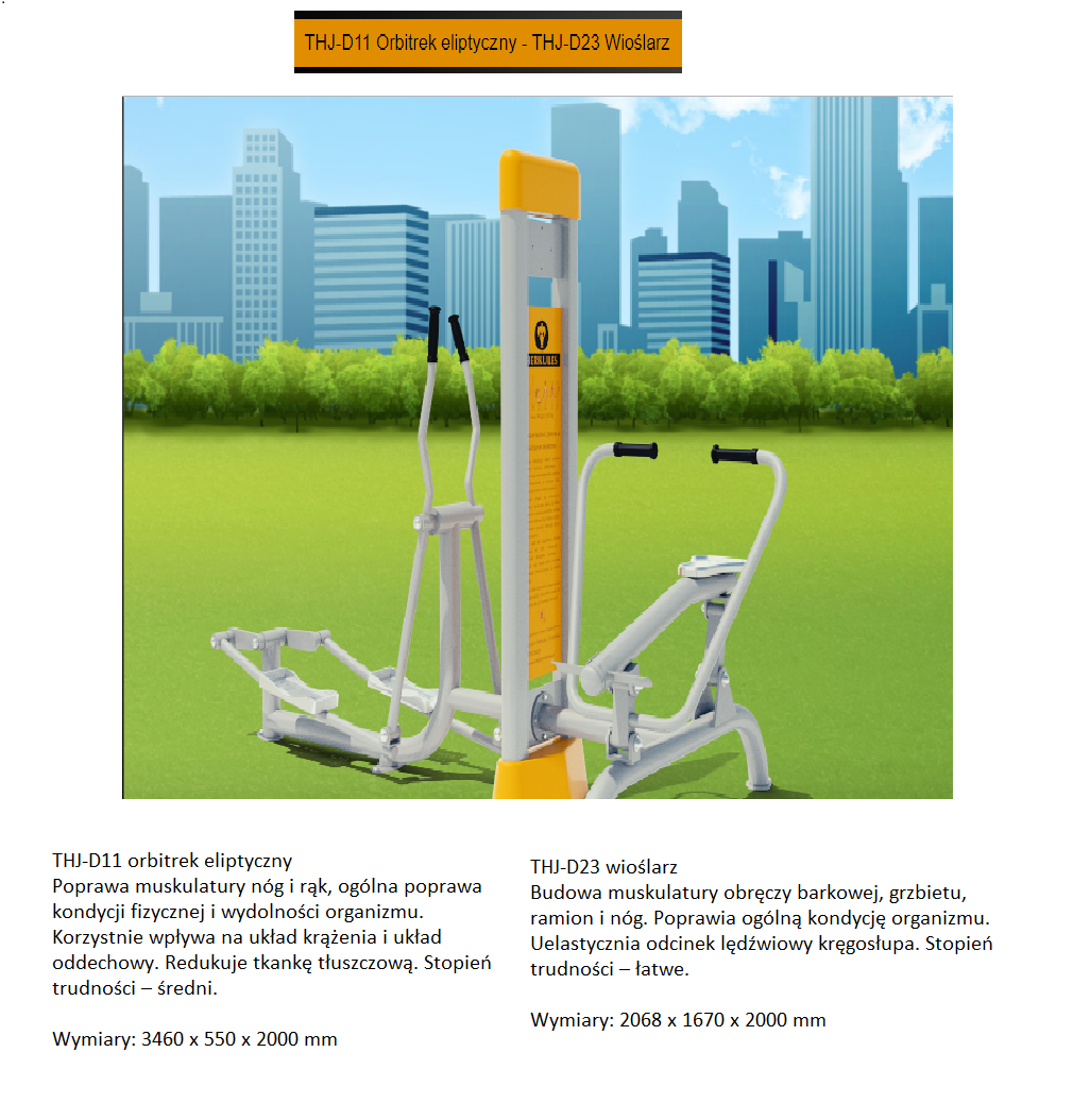 | Urządzenia Outdoor Fitness | Orbitrek eliptyczny, wioślarz, koła Tai Chi, jeździec, rower, wyciąg górny, wyciąg dolny, stepper, twister | 42 000,00 PLN |