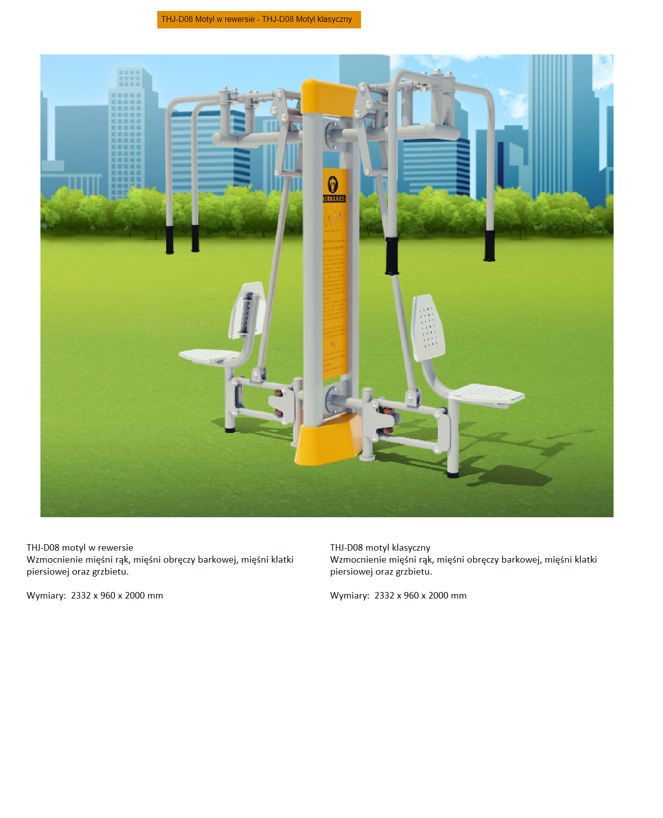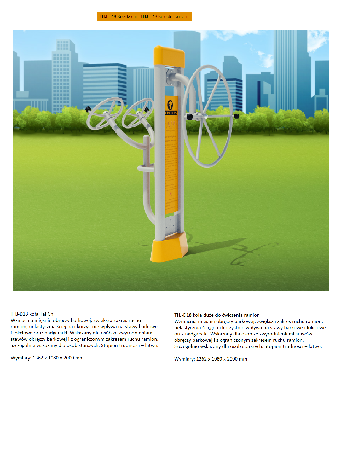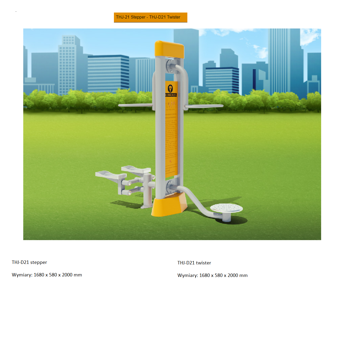 | Urządzenia Outdoor Fitness | Orbitrek eliptyczny, wioślarz, koła Tai Chi, jeździec, rower, wyciąg górny, wyciąg dolny, stepper, twister | 42 000,00 PLN |