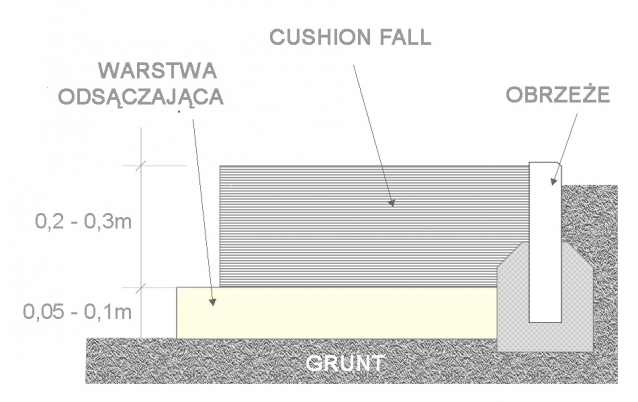 - Modernizacja placu zabaw polegałaby na użyciu nawierzchni amortyzującej upadki dzieci. Zabezpieczenie odbyłoby się przy użyciu materiału CushionFALL czyli bezpieczną, ekologiczną nawierzchnią w postaci zmiękczonych technologicznie zrębków drewnianych przeznaczona na place zabaw i tereny rekreacyjne, amortyzująca upadki i chroniąca przed urazami. Podstawową zaletą nawierzchni CushionFALL są jej znakomite właściwości amortyzacji upadków oraz możliwość wieloletniego praktycznie niemal bezobsługowego użytkowania. Nawierzchnia nie wymaga wymiany w trakcie jej użytkowania jak to ma miejsce w przypadku nawierzchni piaskowych.
