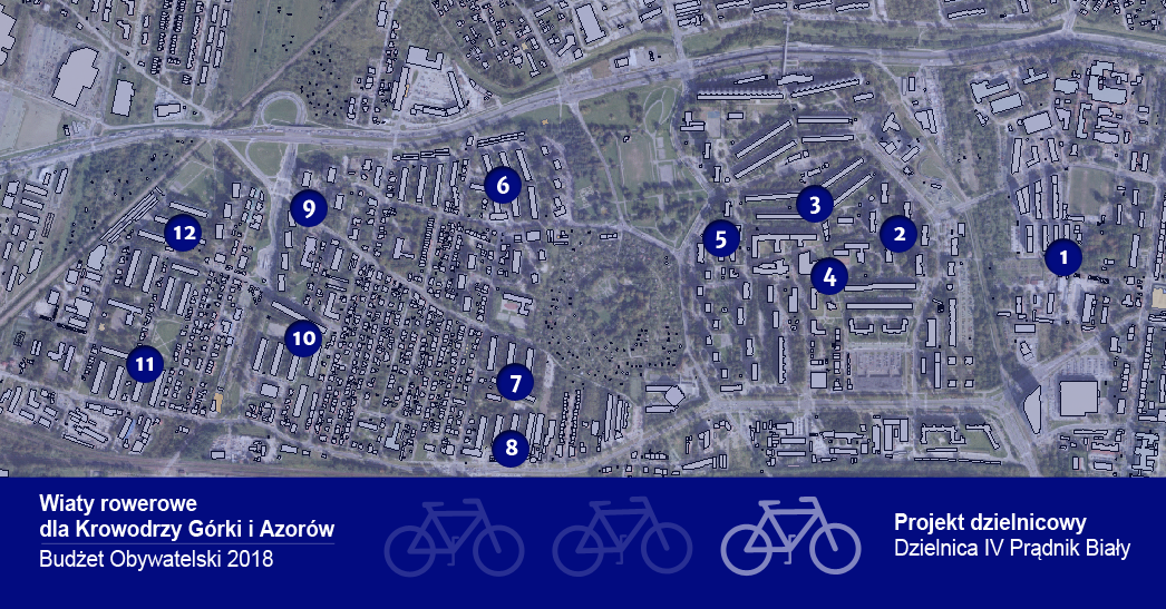 Dlatego chcemy rozwiązać ten problem poprzez budowę 12 ogólnodostępnych wiat rowerowych, które dadzą łącznie ponad 200 miejsc parkingowych dla rowerów w sąsiedztwie bloków. Wszystkie będą ogólnodostępne i będą chroniły jednoślady przed warunkami pogodowymi.