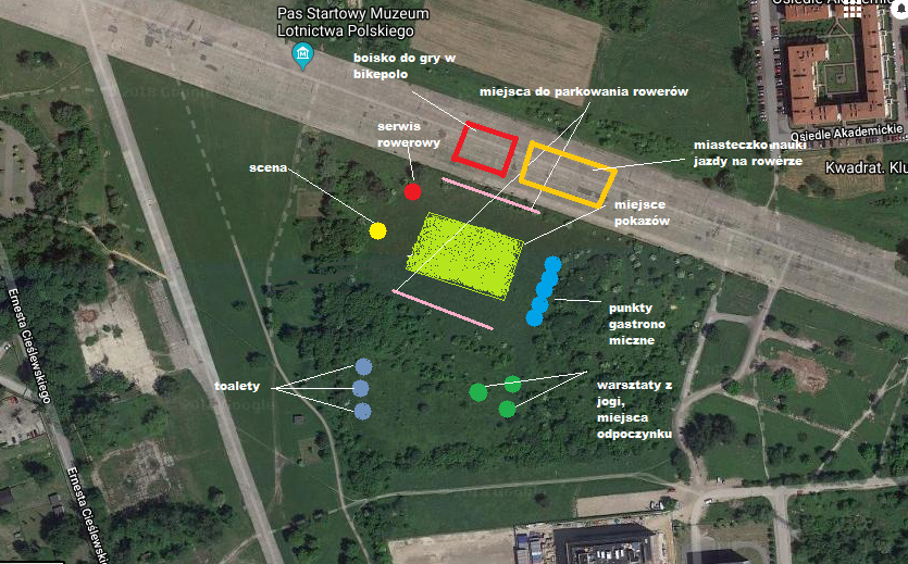 Dodatkowe lokalizacje: Przejazd z Krakowskich Błoń do Parku Lotników Polskich, gdzie odbędzie się planowane wydarzenie.