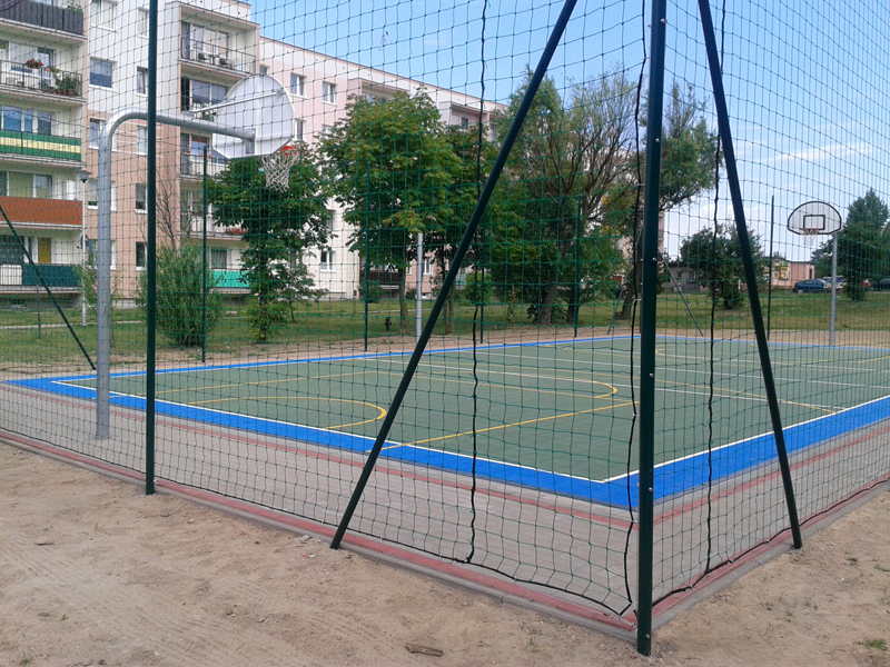 wykonanie naprawy istniejącego podłoża asfaltowego, montaż nowej modułowej nawierzchni z polipropylenu, pomalowanie linii, zakup i montaż słupków stalowych z tulejami i siatką do piłki siatkowej, zakup i montaż zestawu do koszykówki model 663 wysięg 120 cm, zakup i montaż ogrodzenia z siatki sportowej o wysokości 4 m, zakup i zamontowanie dwóch furtek wejściowych 2 m x 1 m, rewitalizacja pasa zieleni wokół boiska.