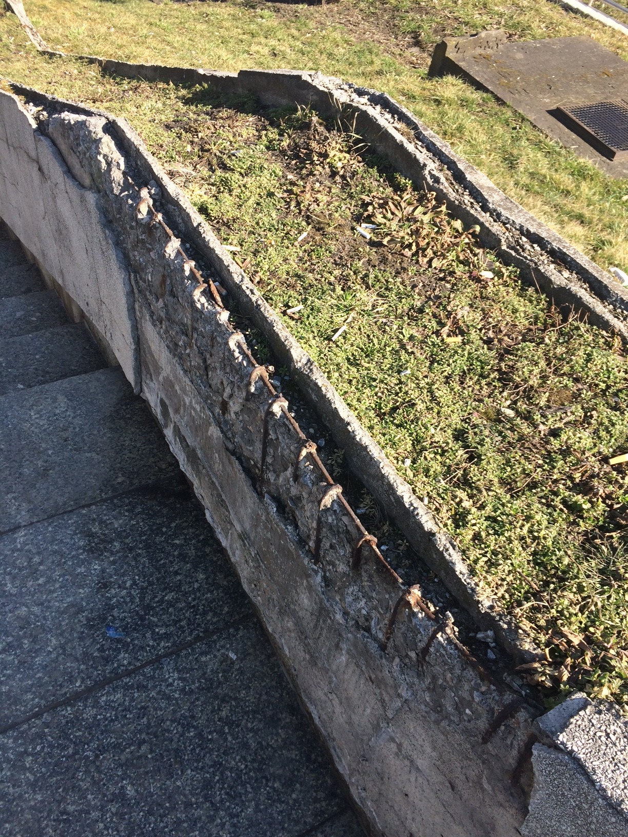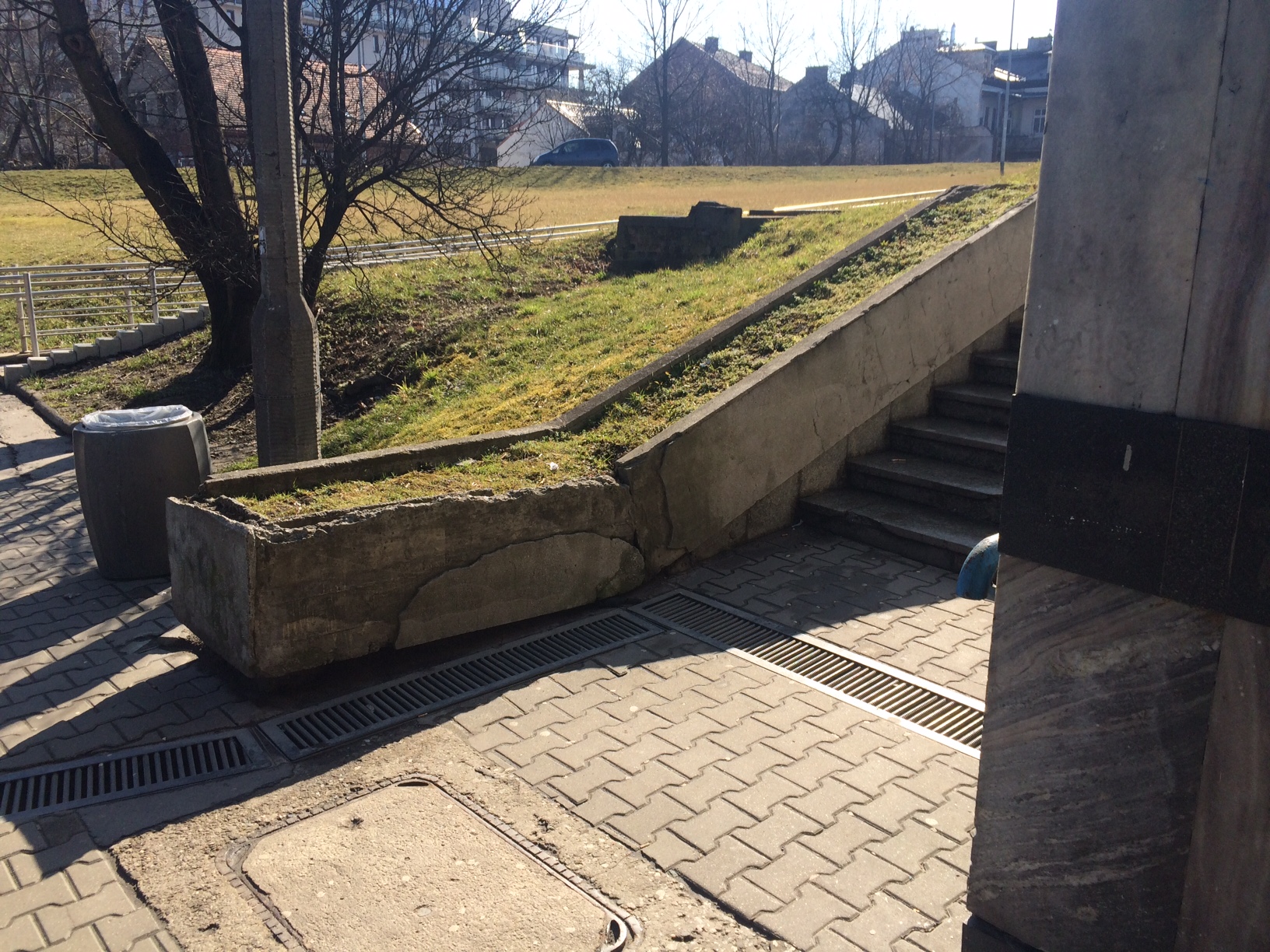 Remont istniejących betonowych kwietników położonych przy schodach prowadzących na przystanek autobusowy (m.in. likwidacja ubytków tynku), wymiana ziemi, nasadzenie roślin (pnączy) / krzewów, montaż siedzisk (w górnej części) dla pasażerów oczekujących na transport.