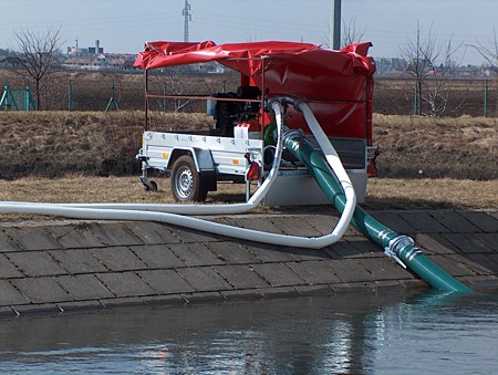 Przewoźna pompa przeciwpowodziowa dużej wydajności. Jest to przewoźny zestaw pompowy zdolny do szybkiego reagowania w trudno dostępnych miejscach oraz w warunków istniejących podczas klęski żywiołowej. Takim właśnie zestawem jest Motopompa przewoźna do wody zanieczyszczonej P-45/1. Agregat pompowy zamontowany na homologowanej przyczepie, posiada świadectwo dopuszczenia CNBOP-PIB
