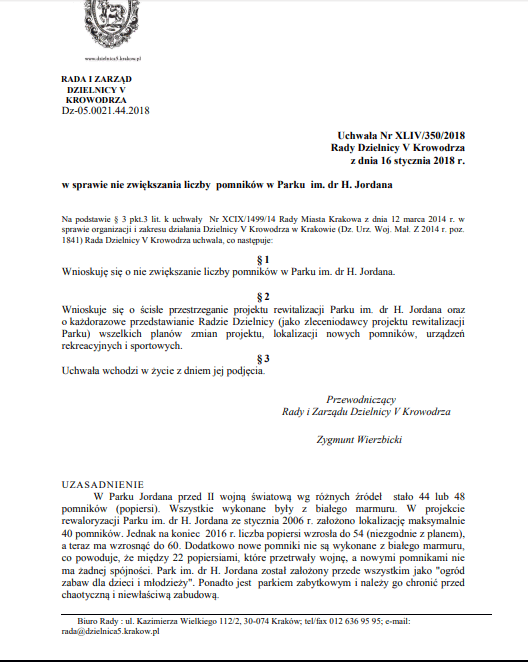 ZASTĄPMY KAŻDY KOLEJNY PLANOWANY POMNIK W PARKU JORDANA NOWYM DRZEWEM. BO TO DRZEWA TWORZĄ PARK, A NIE POMNIKI. DRZEWA TO RÓWNIEŻ GODNA FORMA UPAMIĘTNIENIA, A JAKŻE PRZYJAZNA DLA LUDZI I OTOCZENIA.