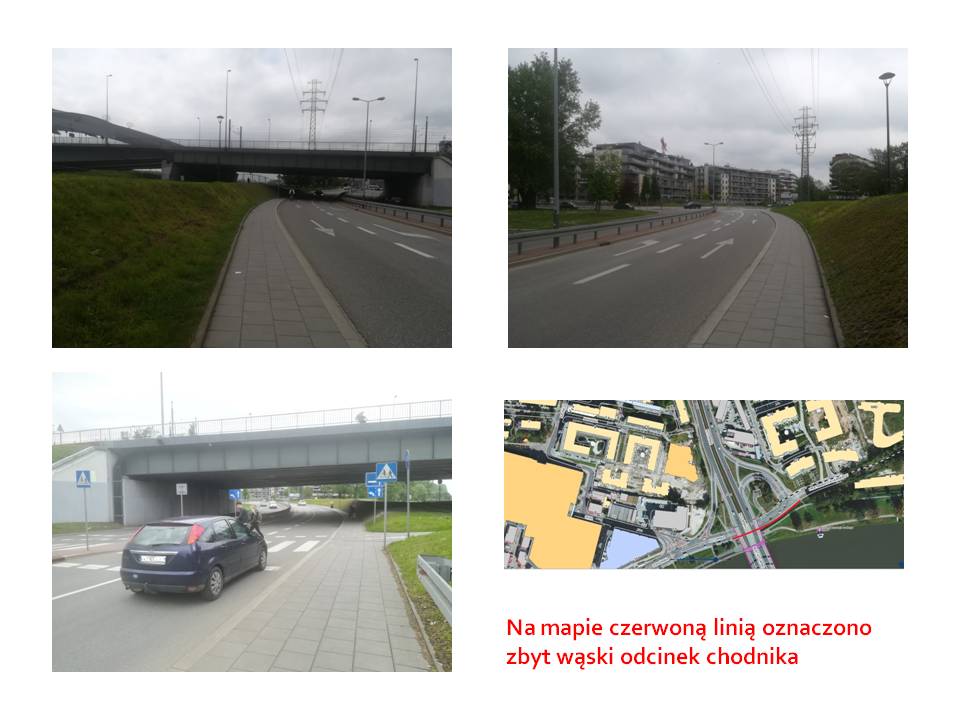 -opracowanej koncepcji branży drogowej w ramach zadania pn.: „Przebudowa istniejącego układu drogowego na skrzyżowaniu na węźle Kotlarska-Podgórska w Krakowie (łącznica po wschodniej stronie Mostu Kotlarskiego)”,zgodnie z umową 879/ZIKiT/2009 z dnia 29.10.2018 wraz aneksami -zakres wnioskowanego chodnika częściowo wchodzi w zakres inwestycji .
