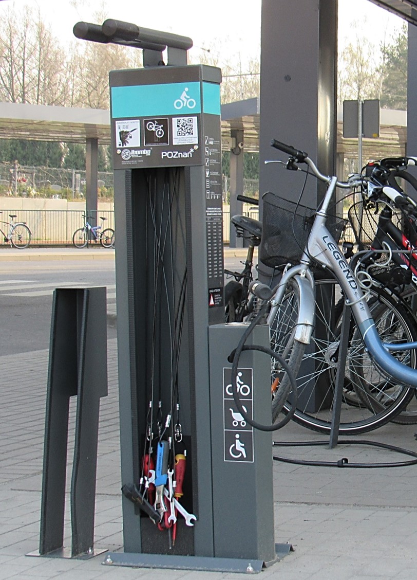 przewidywany projekt zawiera zamontowanie popularnej stacji napraw rowerów, przy których znajdują się niezbędne narzędzia służące do reperowania sprzętu rowerowego takiego jak klucze pompka obcęgi itp