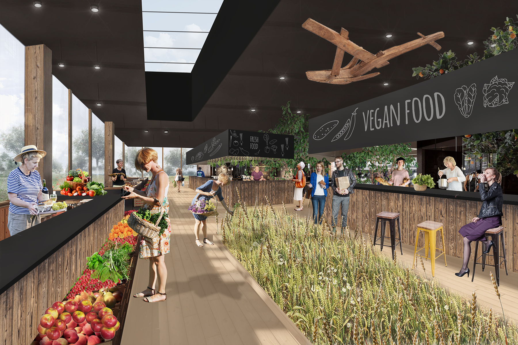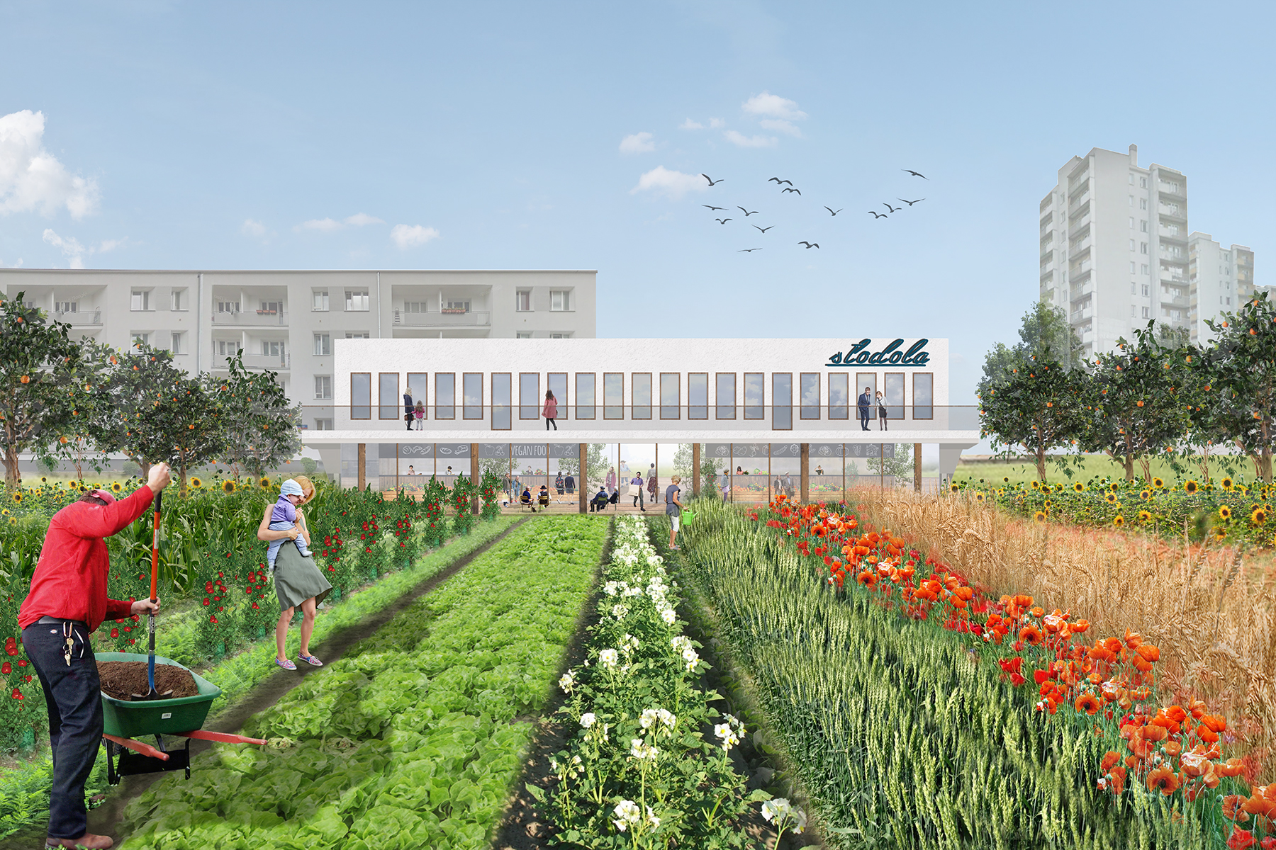 Urbanfarm, czyli obszar z dużą przestrzenią uprawną, z której korzystają mieszkańcy. Jest wyrazem powrotu do nieco wyidealizowanej przeszłości – małopolskiej wsi, w której każdy się zna, żyje lokalnie i ma dostęp do zdrowej, miejscowej żywności.