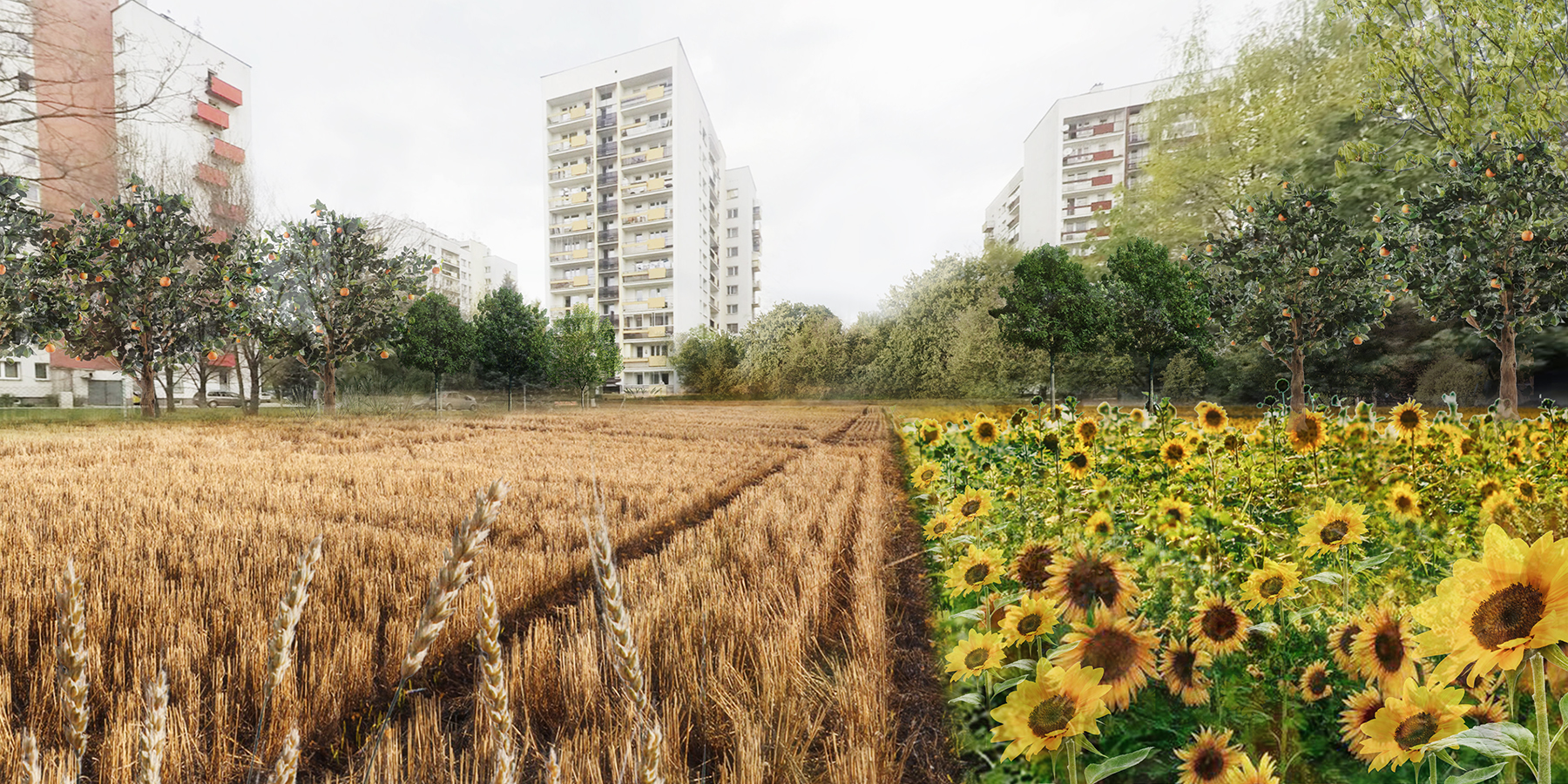 Urbanfarm, czyli obszar z dużą przestrzenią uprawną, z której korzystają mieszkańcy. Jest wyrazem powrotu do nieco wyidealizowanej przeszłości – małopolskiej wsi, w której każdy się zna, żyje lokalnie i ma dostęp do zdrowej, miejscowej żywności. Dwie trzecie terenu zajmuje pole, które jest miejscem uprawy wielu gatunków warzyw i roślin jadalnych, dookoła rosną różne rodzaje drzew owocowych. Projekt zakłada m.in. odnowione dawnego modernistycznego pawilonu, nadając mu nową ekologiczno-edukacyjną funkcję. Na parterze oprócz stanowisk z zebraną żywnością zaaranżowano kuchnie, gdzie będzie można przetwarzać zbierane na miejscu warzywa i owoce. Na górnej kondygnacji z myślą o lokalnej społeczności zaprojektowano centrum spotkań, wydarzeń i wystaw.