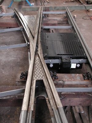 - rozjazd i szyny łączące wykonane z profilu szyny kolejowej (w miarę możliwości) - gatunek stali: R350HT, twardość: min. 390HBW