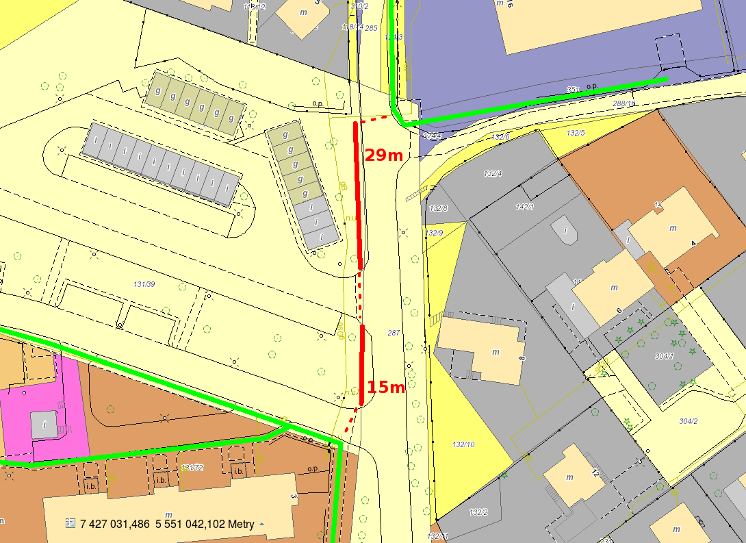ze względu na brak chodnika tym odcinku zmusza pieszych do poruszania się po jezdni.