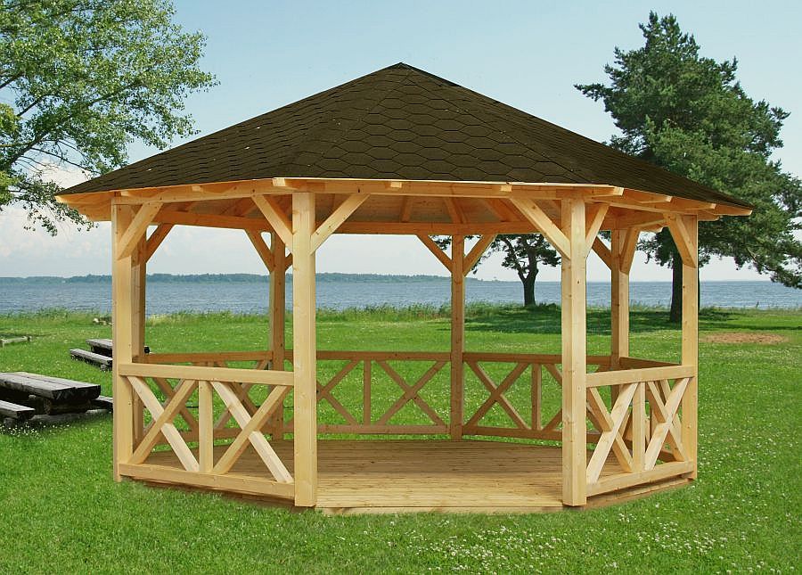 - drewnianą, zadaszoną altanę z dwoma ławkami i stołem (metal-drewno) i dwie skrzynie na zabawki i gry,