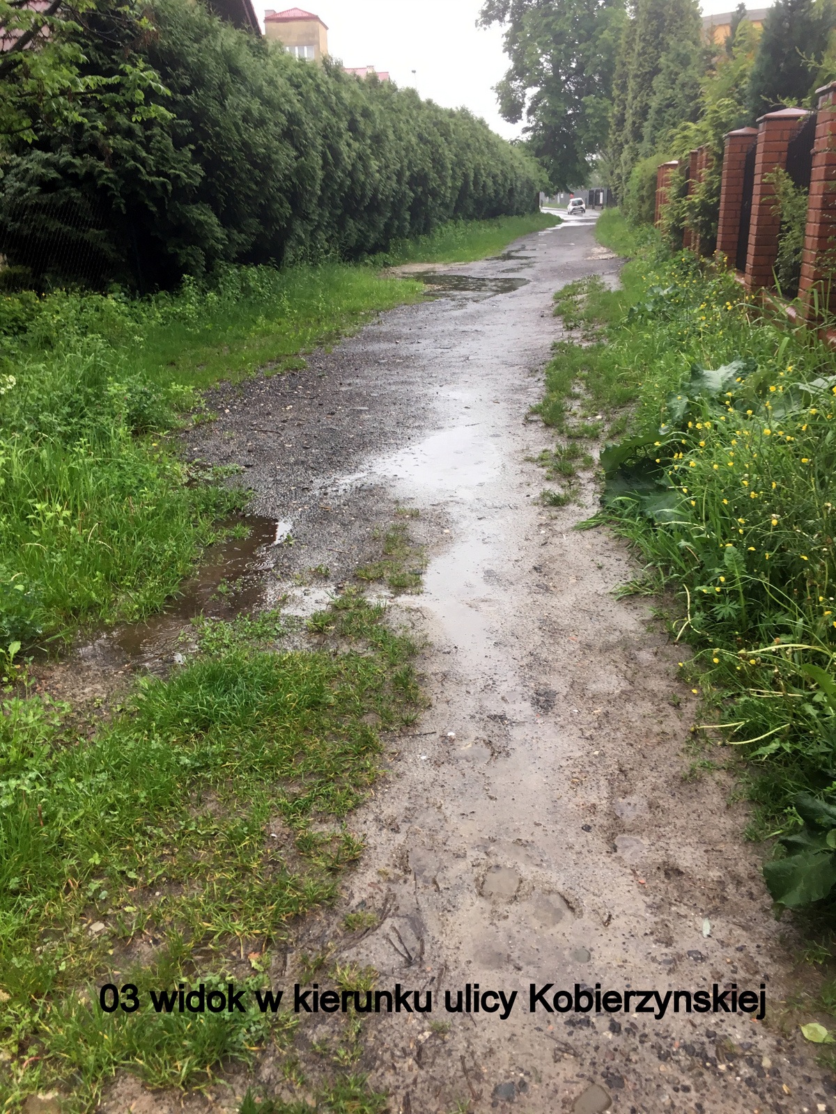 Dlatego utwardzony chodnik z prawdziwego zdarzenia znacznie poprawi sytuację mieszkańców ulicy. Część omawianego odcinka z inicjatywy mieszkańców budynku wielorodzinnego położonego przy ul. Profesora Jerzego Wiśniewskiego 9 została w 2010 prowizorycznie utwardzona na odcinku około 45 m na szerokość dwóch płytek chodnikowych. Jednak to rozwiązanie w tamtym czasie miało mieć charakter doraźny, a wysiłki mieszkańców w kwestii budowy chodnika nie przyniosły oczekiwanych rezultatów. Dzisiaj ścieżka ma nieporównywalnie większe znaczenie dla mieszkańców tej części dzielnicy, ale w żaden sposób nie zmieniło to opisanego stanu rzeczy który trwa do dzisiaj