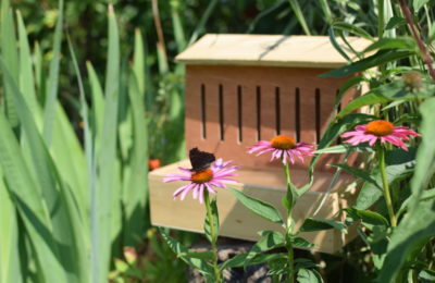 Motyle w ogrodzie są cudownym, pięknym elementem. Każdy lubi je obserwować podczas gdy piją nektar z budlei czy jeżówki, delikatnie ruszając skrzydłami. To niezwykle relaksujący widok i dobrze ukoi nerwy kogoś, kto przez 5 dni w tygodniu uczy się czy też pracuje. Wiemy też, że aby motyle u nas zamieszkały, muszą mieć miejsce do latania i dużo nektaru. Rabata z kwiatów jednorocznych, takich jak cynie, nagietki czy astry jest dla nich doskonała. Z bylin krwawniki, jeżówki, słoneczniczki, floksy i rozchodniki. A z krzewów oczywiście budleję. W domku motyle nie mieszkają, nie wchodzą tam na noc jak ptaszki do budek lęgowych, czy jak jeże na dzień. Zimą motyle muszą mieć odpowiednią, w miarę stałą temperaturę i wilgotność. Oczywiście drewniana skrzynka nie jest rozwiązaniem idealnym, ale łatwiej im w niej przetrwać mrozy niż w miejscu bez osłony. Zadbajmy aby była dla nich możliwość hibernacji u nas, zwłaszcza gdy w okolicy dominują beton i trawniki.Ten projekt to Edukacja w zakresie zachowywania równowagi miedzy potrzebami ludzi, a środowiskiem. Poszerzenie wiedzy o korzyściach płynących z pracy owadów zapylających dla człowieka i środowiska .