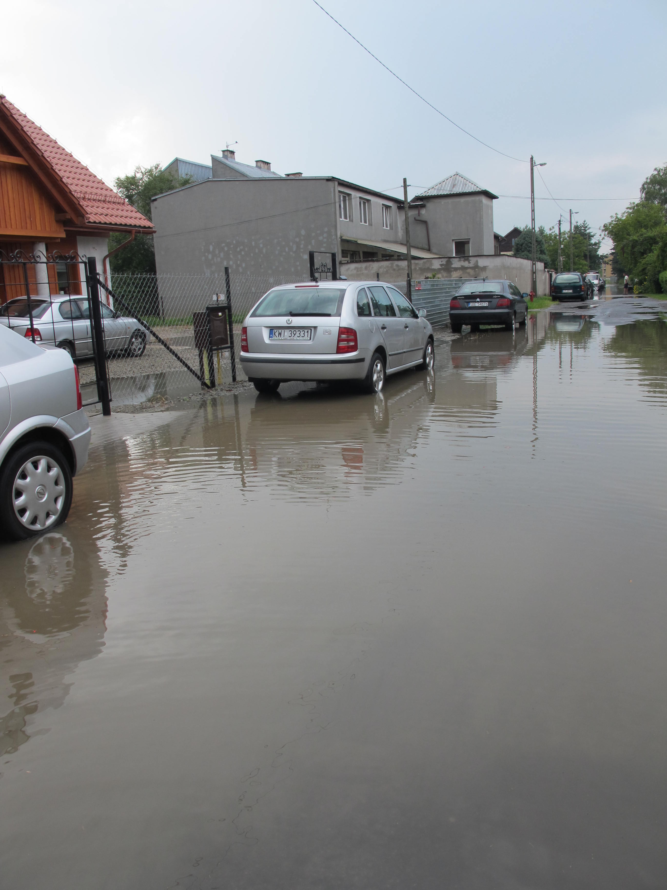 Problem podtapiania piwnic oraz stojącej wody na ulicy uniemożliwiającej niejednokrotnie dotarcie na posesje kilku domów (brak pobocza) z roku na rok stają się coraz poważniejsze. Od kilku lat przy większych bądź nagłych opadach podpiwniczone domy są regularnie zalewane. Z pewnością problem ten związany jest z odprowadzaniem deszczówki ze zlokalizowanej nieopodal autostrady, ponieważ przed realizacją tej inwestycji nie dochodziło do podtopień na naszym terenie. Jednocześnie dodatkowym utrudnieniem jest woda gromadząca się w zagłębieniach drogi, która tworzy rozległe, kilkumetrowe kałuże o głębokości dochodzącej do kilku centymetrów, co uniemożliwia wejście na posesje, jak również woda ta zalewa przylegające do drogi działki. W związku z powyższym dostrzegamy pilną konieczność rozwiązania tego problemu (choćby częściowo) poprzez stworzenie systemu odwadniającego ulicę Działkową.