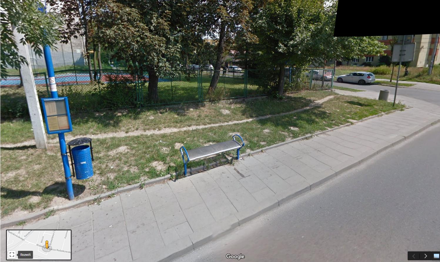 Propozycją jest poszerzenie chodnika w rejonie samego przystanku oraz na pozostałym odcinku do ul. Wilczej. Szczególnie newralgiczny jest obszar samego przystanku z umiejscowioną ławeczką na dość wąskim chodniku. Poszerzenie chodnika w obszarze samego przystanku umożliwi dzieciom ominięcie ławeczki i osób oczekujących na autobus, co nierzadko jest dużym problemem dla dzieci w wieku szkolnym (okolica szkoły podstawowej nr 119).