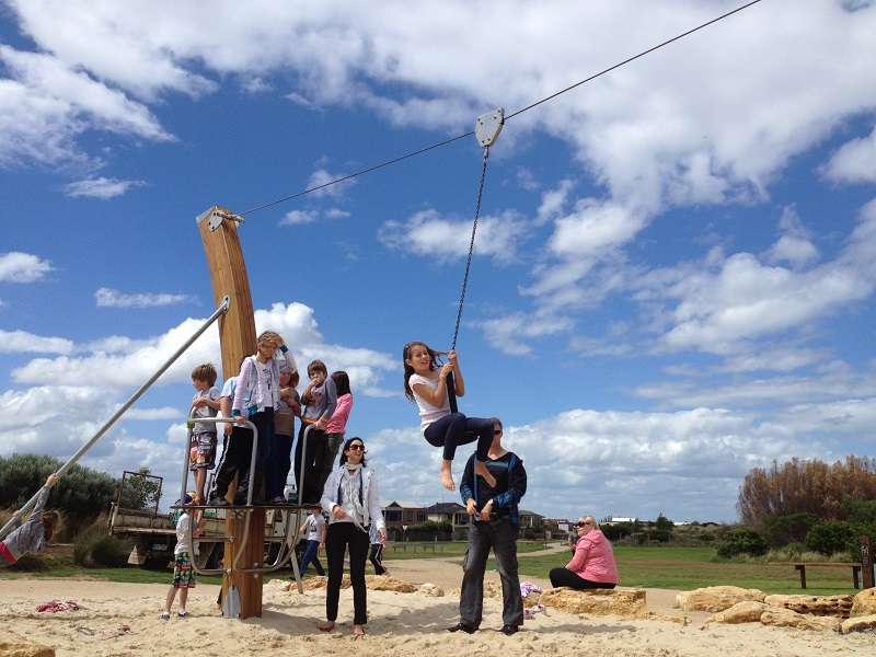Ideą placu jest "oderwanie" starszych dzieci i młodzieży od ziemi, a konkretnie od krzeseł przy komputerach :).
