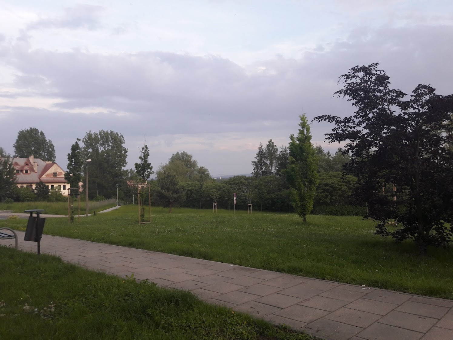Obecnie na terenie usytuowanych jest pięć ławek, ale tylko jedna, ustawiona jest przy głównej alejce z widokiem w kierunku południowym, pozostałe ławki towarzyszą skateparkowi i skierowane są na tor jazdy. Te również częściej wykorzystywane są jako miejsca odpoczynku dla użytkowników skateparku, dla niezainteresowanych akrobacjami mniej atrakcyjne, a czasami nawet kolizyjne. Dla spacerowiczów i pragnących odpocząć w zieleni pozostaje jedna ławka, w dodatku przy alejce służącej przede wszystkim jako ciąg komunikacyjny pomiędzy osiedlami oraz dojście do przystanków komunikacji miejskiej. Teren, jako teren zieleni pomiędzy osiedlami ma wielki potencjał, pomimo pobliskiej dość ruchliwej ulicy często odwiedzany jest spacerowiczów, rodziców z małymi dziećmi w wózkach, spacerujących z psami, dzieci i młodzież korzystającą z urządzonego skateparku. Odpocząć tu również można w drodze z pracy lub od innych obowiązków. Szczególnie cenne co oferuje miejsce to widok i przestrzeń. Możliwość popatrzenia w dal. Nie są to widoki zapierające dech w piersiach, ale na tyle dalekie by móc dać odpocząć oczom. Kto zechce tylko przysiąść skorzysta z ławki usytuowanej przy alejce. Kto zachce dłużej pokontemplować, porozmawiać z przyjaciółmi czy znajomymi pokołysze się na ławko-huśtawce usytuowanej dalej na trawniku.