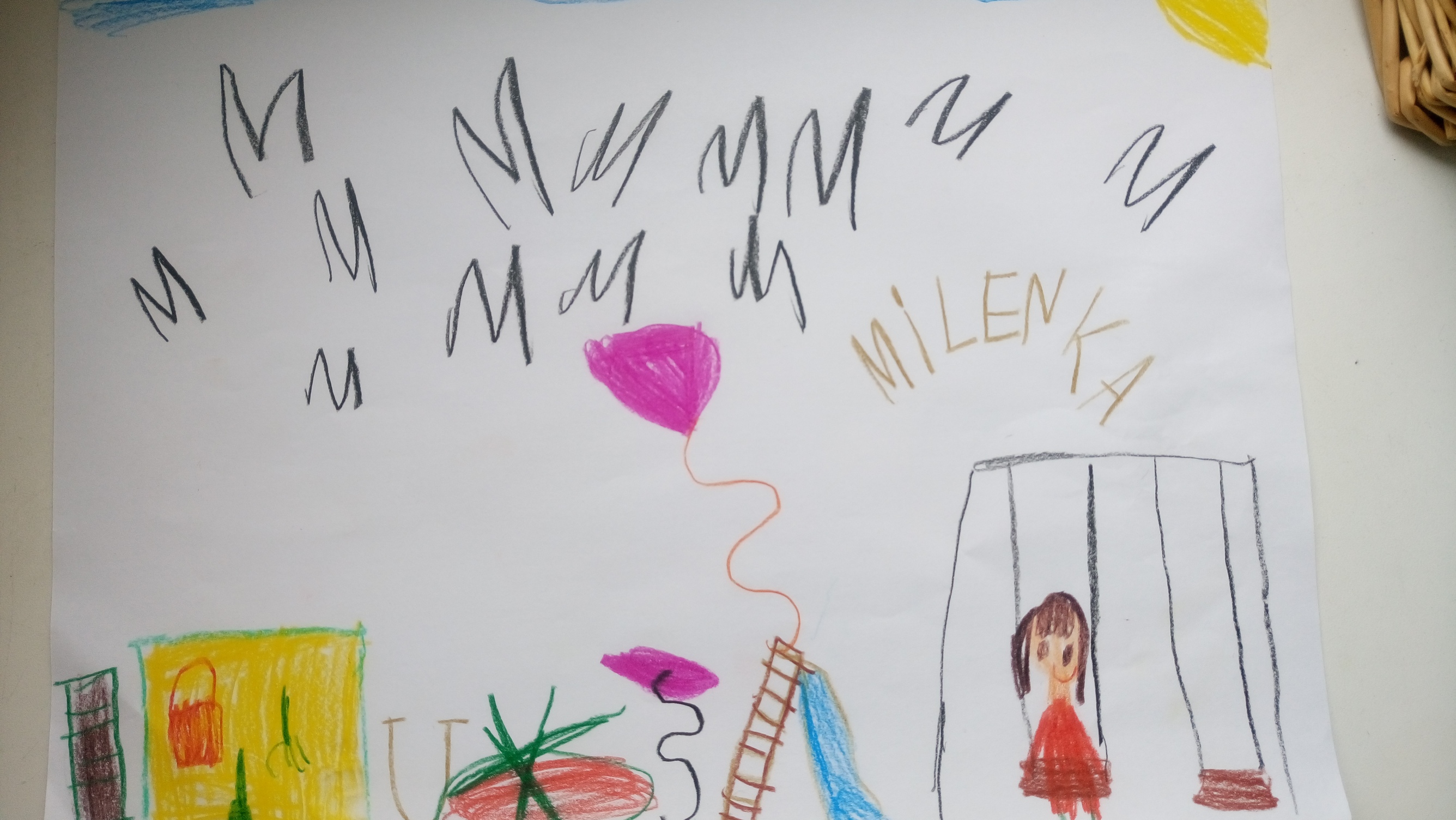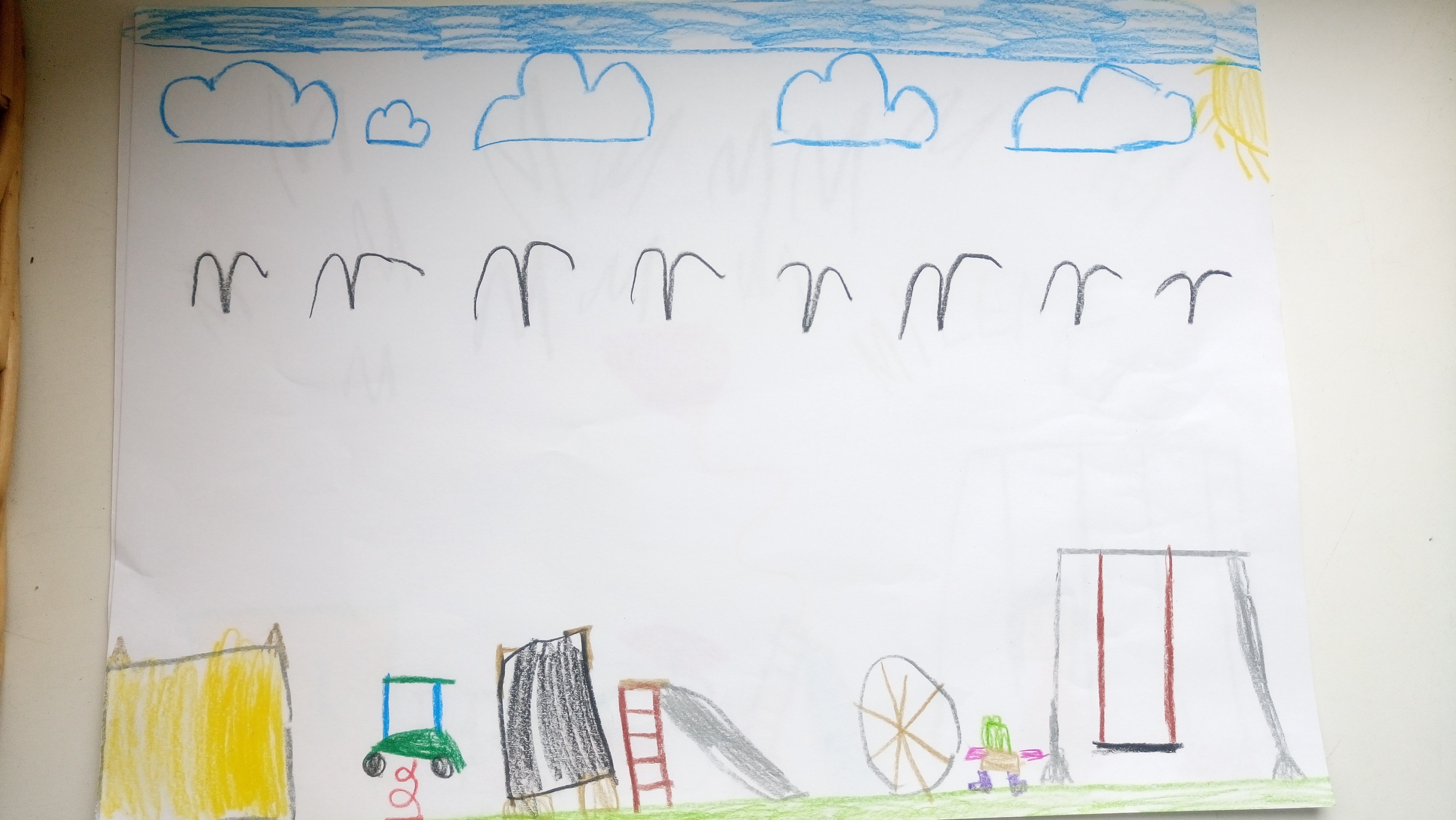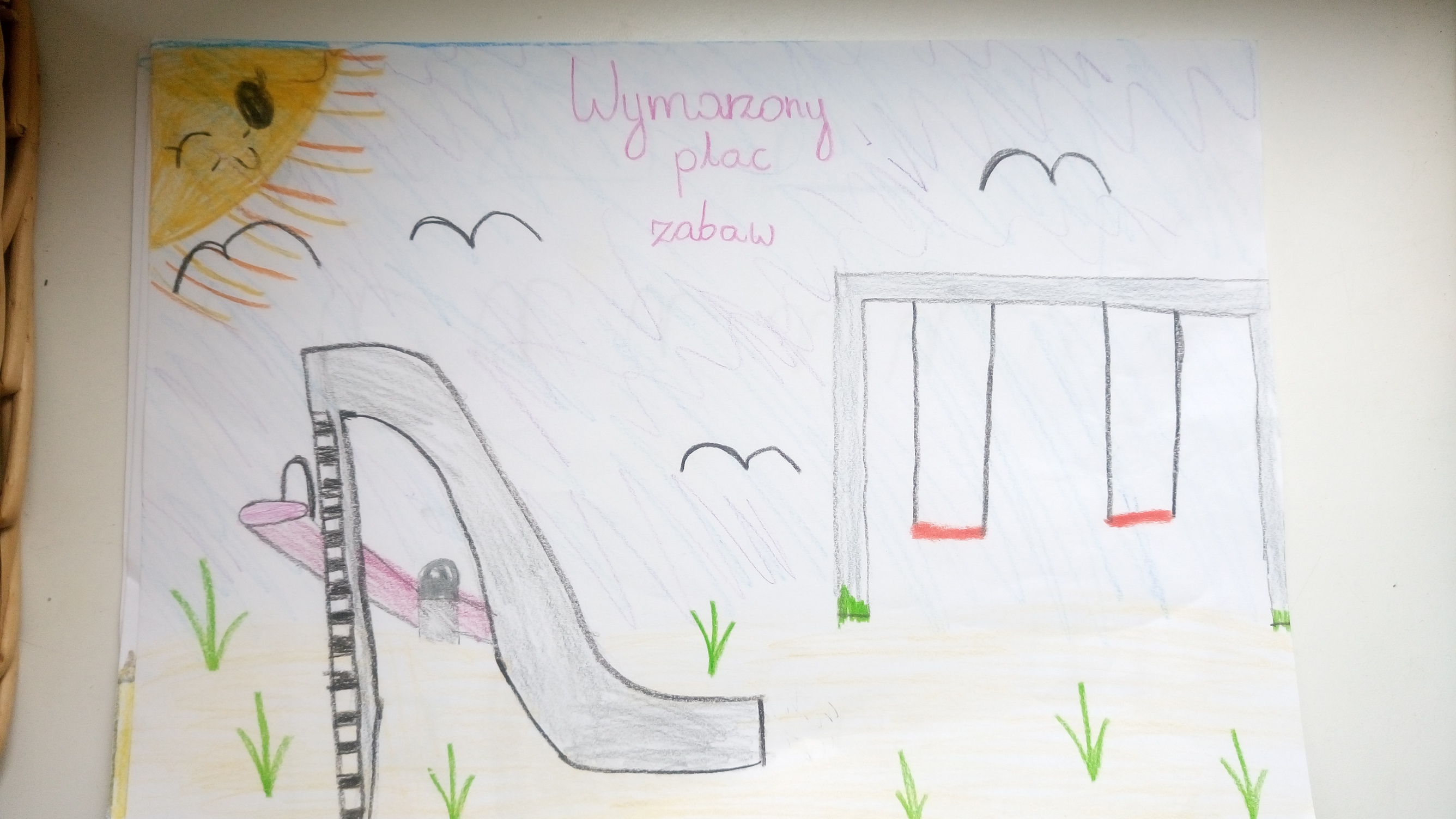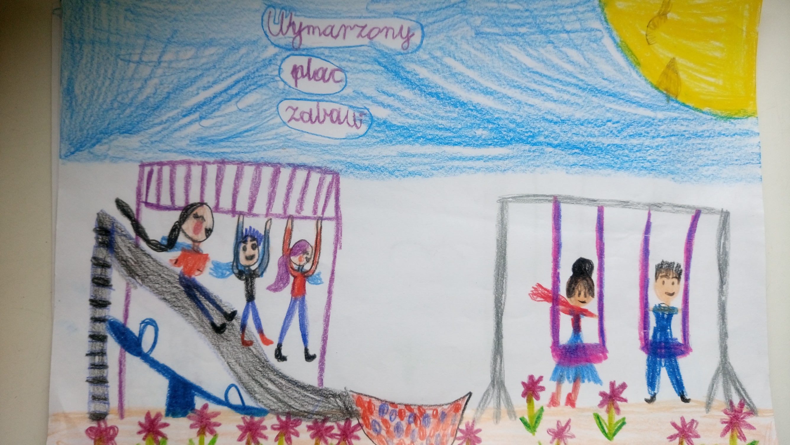 Dzieci narysowały obrazki z wymarzonym placem zabaw.