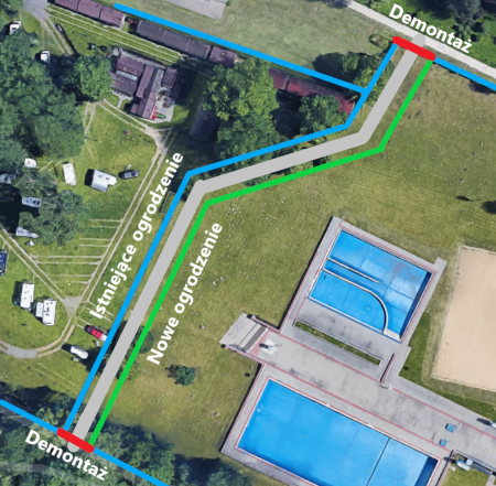 - Wybudowanie nowego ogrodzenia terenu basenu od strony campingu, równolegle do istniejącego