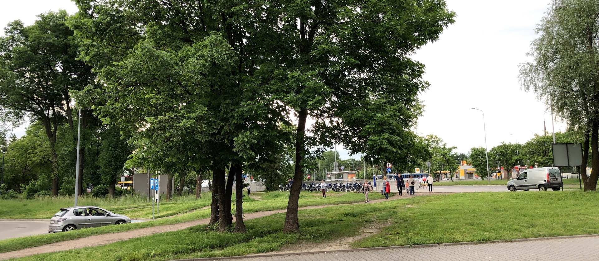 Budowa chodnika w miejsce wydeptanych ścieżek, rekultywacja terenu, nasadzenia drzew i krzewów przy McDonald's w rejonie Ronda Czyżyńskiego.