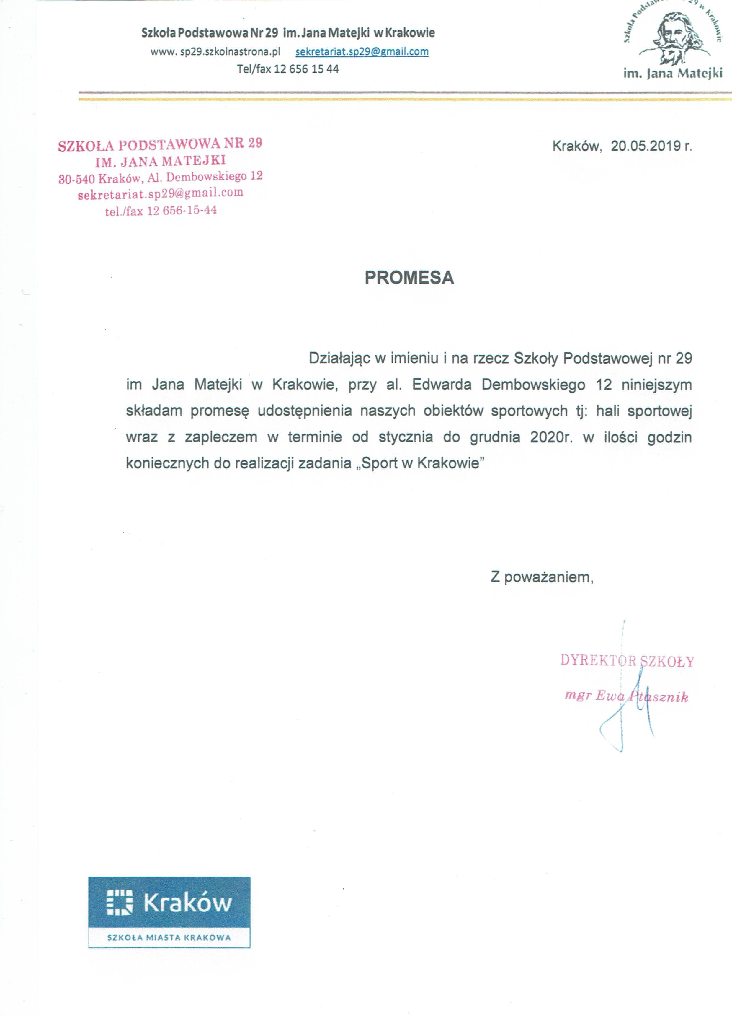 - propagowanie sportu, kultury fizycznej, zdrowego stylu życia, aktywności wśród najmłodszych mieszkańców Krakowa,