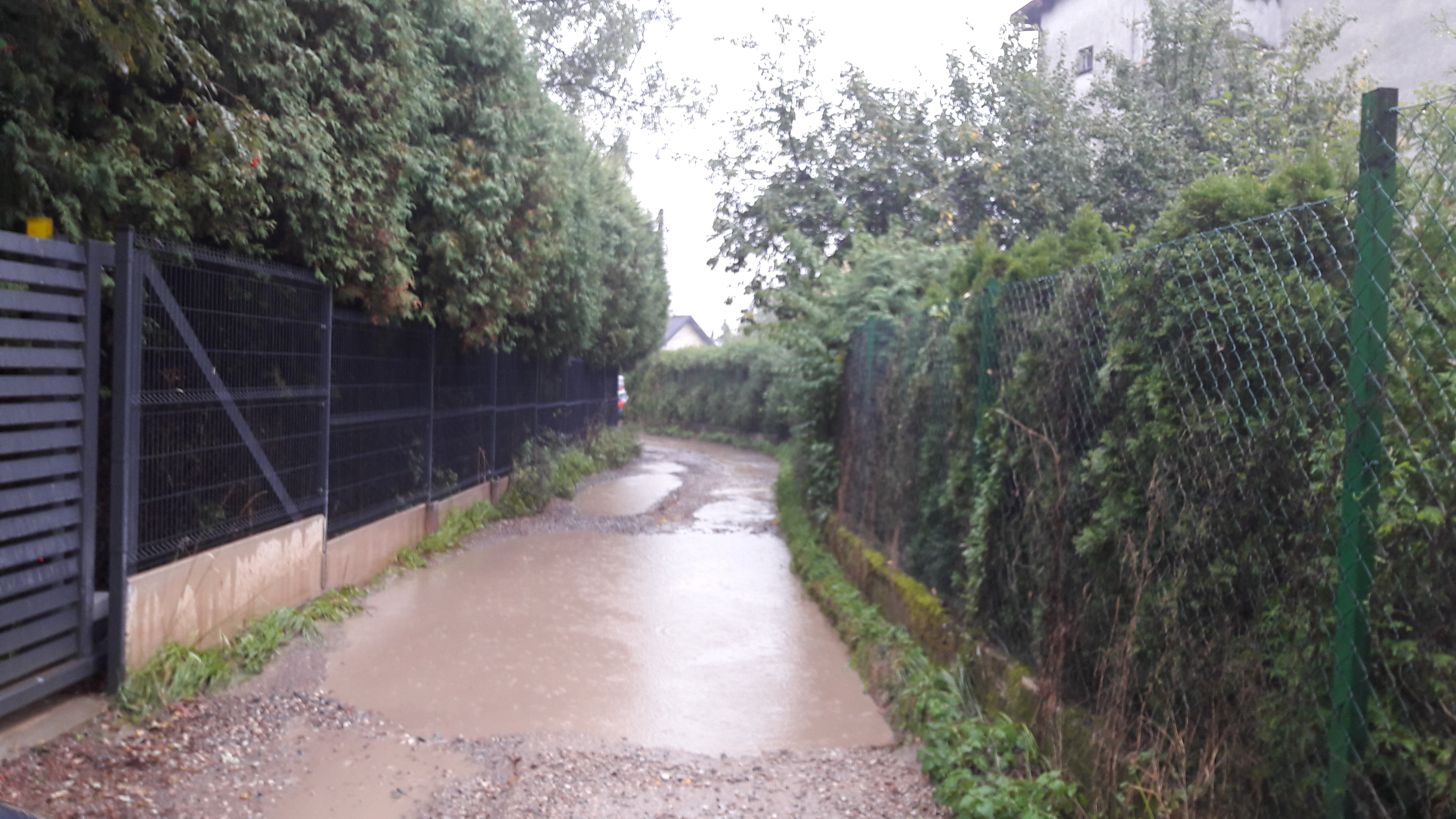 W chwili obecnej ul. Pod Skałą jest drogą wewnętrzną, wymagającą regulacji stanu prawnego. Szerokość pasa drogowego (gminnej działki drogowej) wynosi od ok. 2 do 2,5 m. W związku z powyższym lokalizacja słupów oświetleniowych (ze względu na bezpieczeństwo i konieczność zachowania skrajni drogowej) bez wejścia w tereny prywatne jest niemożliwa.