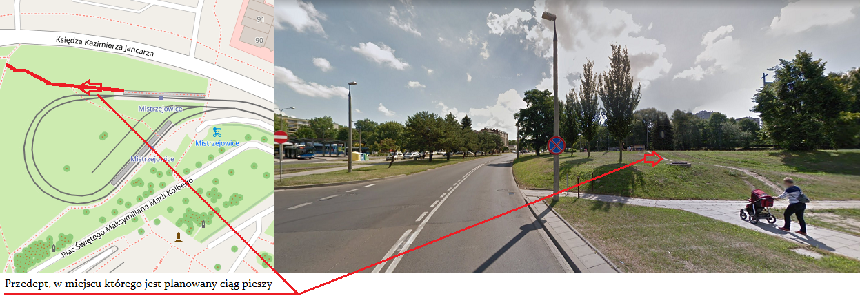 Budowa ciągu pieszego w miejscu przedeptu na terenie zielonym od istniejącego chodnika do przystanku końcowego linii 9, 14 i 16 — pętla tramwajowa Mistrzejowice.