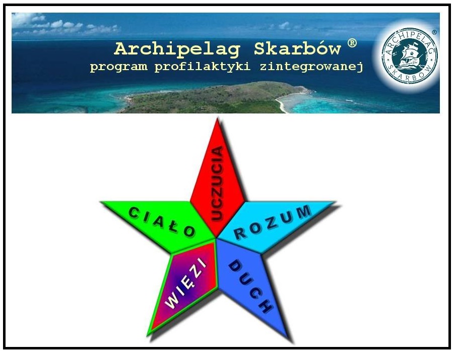 Archipelag Skarbów to sprawdzony i skuteczny program zintegrowanej profilaktyki uzależnień dla młodzieży. Sesje dla młodzieży (2 x 3,5h), rodziców (1h) i nauczycieli (1,5h) wzmacnia ich wzajemne relacje, uczy asertywności i miłości.