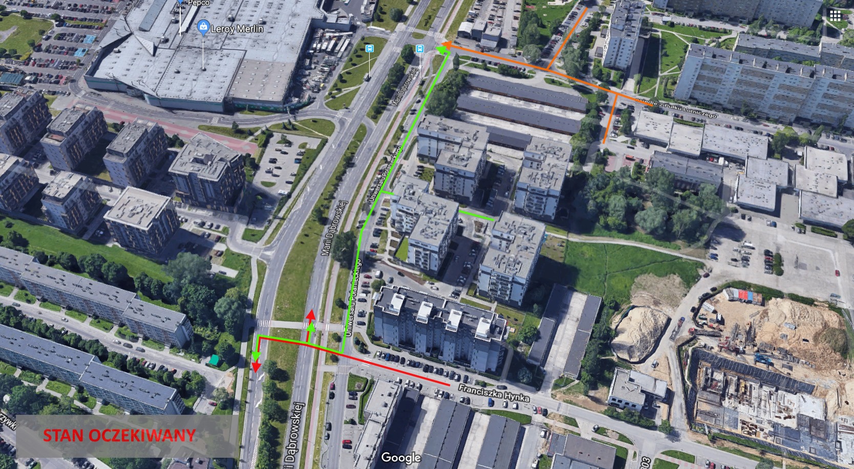 Propozycja wniosku budżetu obywatelskiego zakłada wykonanie skrzyżowania ul. Hynka z ul. M.Dąbrowskiej, w celu bezpośredniego połączenia ulic.
