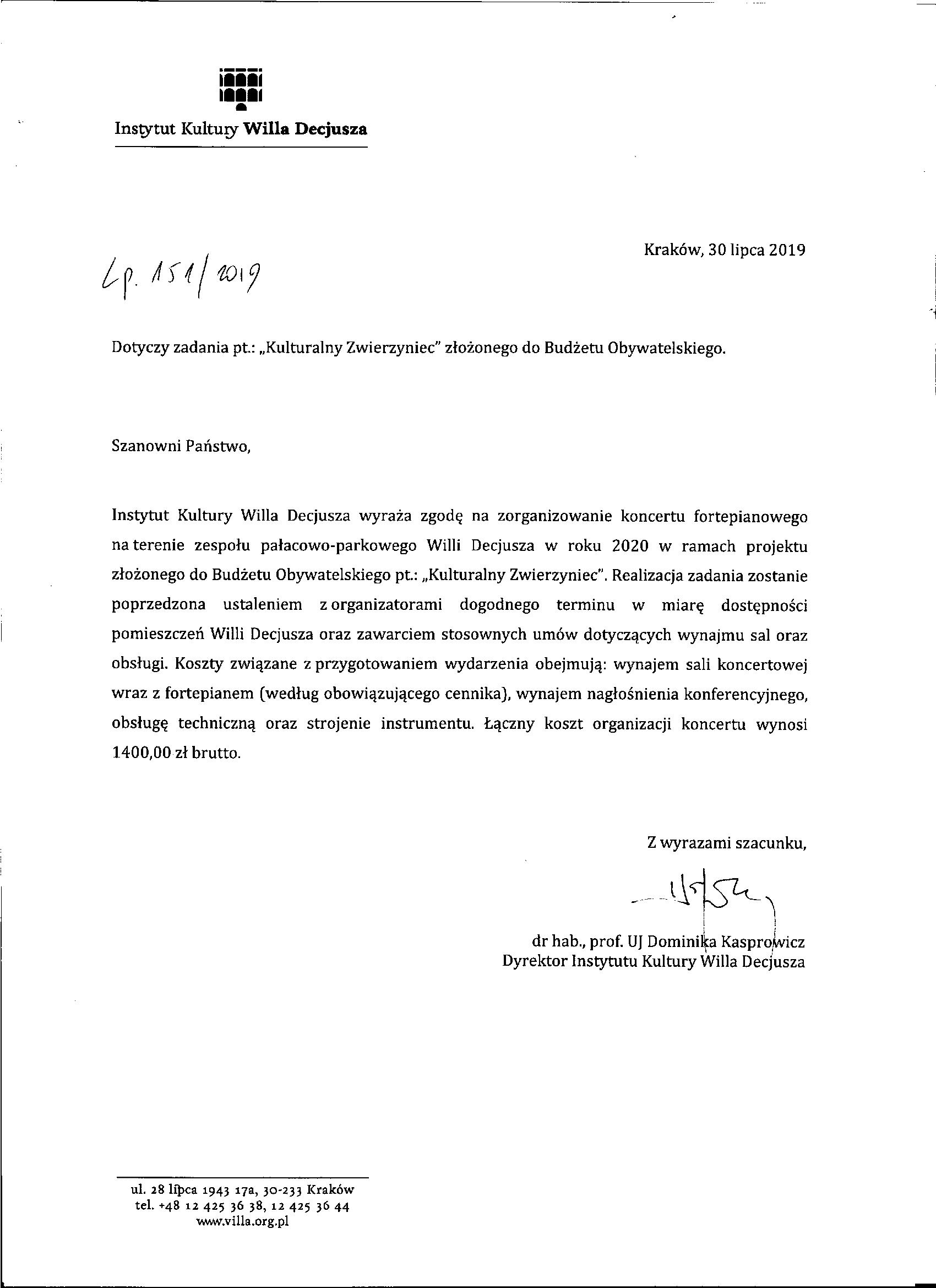 | Honoraria | honoraria dla wykonawców 10 koncertów | 30 500,00 PLN |