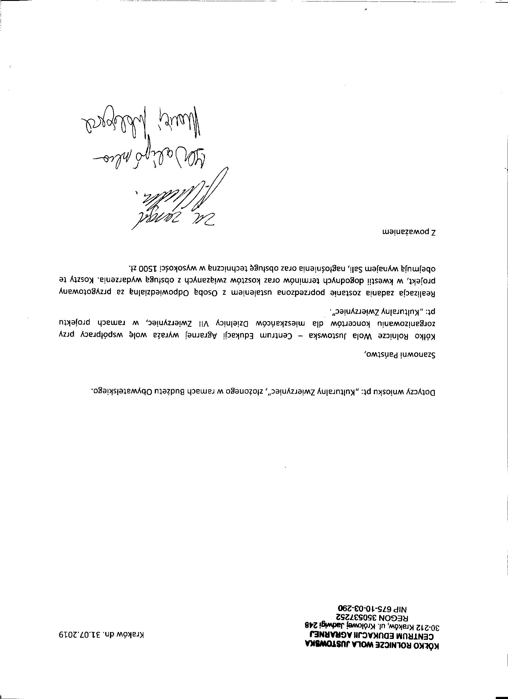 | Promocja 10 koncertów | przygotowanie, druk i dystrybucja materiałów promocyjnych | 1 500,00 PLN |