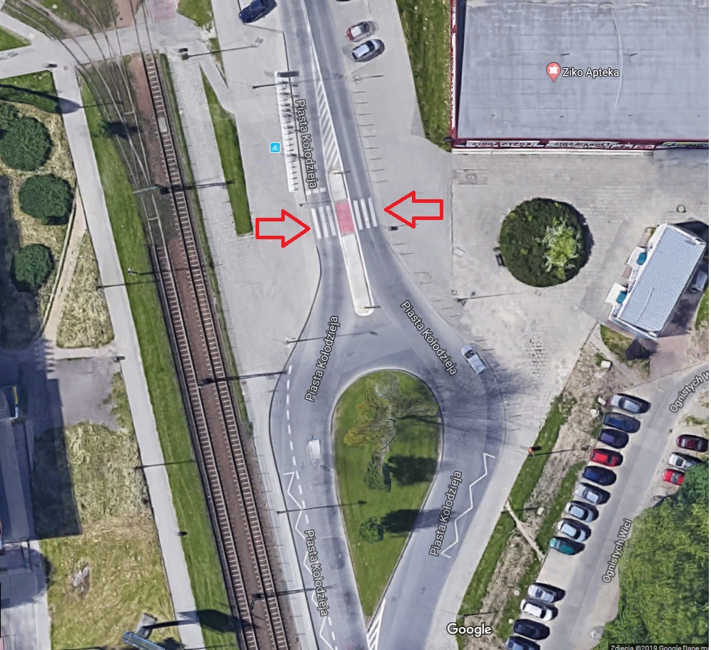 Dodatkowe lokalizacje: Ul. Srebrnych Orłów: Przejście dla pieszych, przejście przez torowisko, przejazd dla rowerów ul. Piasta Kołodzieja przy pętli os. Piastów.