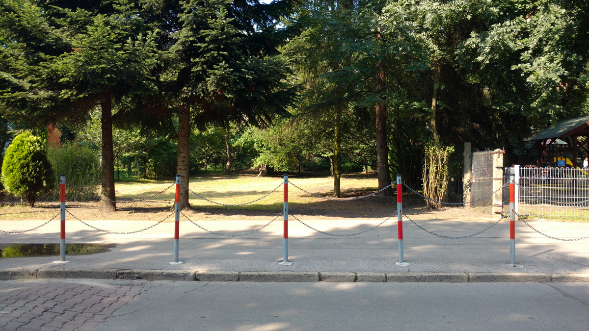 Urządzenia zabawowe tego typu znajdujące się w przestrzeni publicznej są lokowane z uwzględnieniem strefy bezpiecznej określającej min. odległość od innych urządzeń i elementów zagospodarowania terenu zapewniającą bezpieczne użytkowanie urządzenia. W takiej strefie nie mogą znajdować się jakiekolwiek inne elementy stanowiące wyposażenie placu zabaw ani jakiekolwiek przeszkody uniemożliwiające prawidłowe i bezpieczne funkcjonowanie urządzenia z uwagi na zwiększone ryzyko dla użytkownika. Odległości te są określone normatywnie, i stanowią podstawowy warunek dla zachowania bezpieczeństwa na placach zabaw. Strefa taka ma bardzo duże znaczenie w szczególności w przypadku dzieci, które korzystają z urządzeń w sposób intensywny. Powierzchnia przedmiotowego terenu wskazanego jako propozycja lokalizacji urządzenia typu tyrolka, po wykonaniu rewitalizacji placu zabaw w ramach zadania zeszłorocznej edycji będzie niewystarczająca do bezpiecznego montażu urządzenia. Ponadto, w kolizję z normatywną strefą bezpiecznego użytkowania wchodzą znajdujące się w tym obszarze drzewa, których korony wymagały podkrzesania.