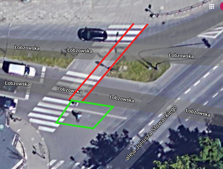 W związku z brakiem możliwości wyznaczenia śluzy na wlocie ul. Łobzowskiej, nie ma też możliwości wyznaczenia przejazdu dla rowerzystów z uwagi na brak prowadzonego ruchu rowerowego chodnikiem wzdłuż al. Słowackiego. Wyznaczenie przejazdu dla rowerzystów sugerowałoby zachowanie ciągłości rozwiązań dla ruchu rowerowego, co nie jest zgodne z prawdą (brak śluzy, brak drogi dla rowerów). Zwraca się uwagę, iż we wnioskowanej lokalizacji nie zachodzi możliwość zawarta w art. 33 ust. 5 pkt 2 ustawy z dnia 20 czerwca 1997 r. Prawo o ruchu drogowym (Dz. U. z 2020 r. poz. 110, 284, 568, 695) pozwalającemu kierującemu rowerem na korzystanie z chodnika, z uwagi na obowiązujące ograniczenie prędkości na jezdni al. Słowackiego oraz brak dostatecznej szerokości chodnika.