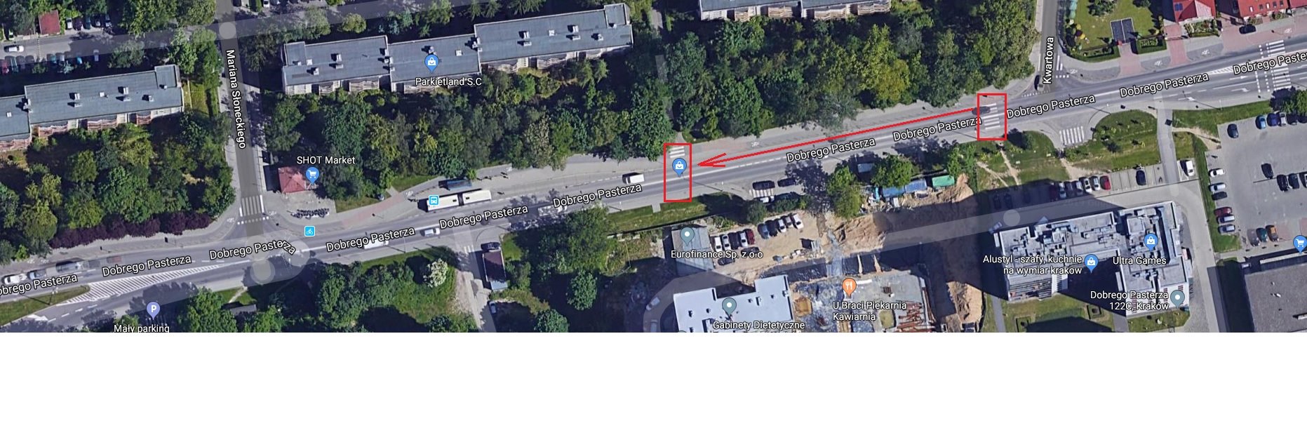 Wnioskowany projekt zakłada utworzenie nowego przejścia dla pieszych na ul. Dobrego Pasterza w pobliżu przystanku autobusowego MPK „Słoneckiego” poprzez likwidację istniejącego przejścia dla pieszych na ul. Dobrego Pasterza w rejonie skrzyżowania z ul. Kwartową oraz jego przeniesienie i wyznaczenie nowego przejścia dla pieszych na ul. Dobrego Pasterza w pobliżu przystanku autobusowego MPK „Słoneckiego”.Z opinii Wydziału Miejskiego inżyniera Ruchu oraz Zarządu Transportu Publicznego wynika, że likwidacja obecnego przejścia dla pieszych nie znajduje uzasadnienia. Przedmiotowe przejście jest zlokalizowane przy skrzyżowaniu co jest zgodne z wytycznymi zawartymi w Rozporządzeniu Ministra Infrastruktury z dnia 3 lipca 2003 r. Istnieje możliwość wyznaczenia nowego przejścia dla pieszych przy skrzyżowaniu z ul. Słoneckiego w rejonie przystanku MPK „Słoneckiego”. Powyższe wymaga przebudowy ulicy mającej na celu dokonanie korekty przebiegu (oddalenia) drogi rowerowej od jezdni wyznaczenia ciągu pieszego bezpośrednio przy jezdni. Konieczne jest również obniżenie krawężników wraz z wykonaniem pasów medialnych, a także zapewnienie odpowiedniego, specjalnie dedykowanego oświetlenia, zgodnego z Wytycznymi prawidłowego oświetlenia przejść dla pieszych. Jest to proces inwestycyjny, dla którego zachodzi konieczność opracowania dokumentacji projektowej i uzyskania wymaganych decyzji wraz z przebudową wg opracowanego projektu, dla którego czas realizacji to min. 2 lata – według uchwały Rady Miasta Krakowa nr XXXV/903/20 z dnia 12 lutego 2020r, w sprawie „Regulaminu budżetu obywatelskiego Miasta Krakowa” w oparciu o § 2 Realizacja projektów w ramach budżetu obywatelskiego odbywa się w cyklu jednorocznym na zasadach określonych w ustawie o finansach publicznych. Ul. Dobrego Pasterza na wnioskowanym odcinku jest objęta obowiązującymi miejscowymi planami zagospodarowania przestrzennego obszarów „Prądnik Czerwony – Wschód” (uchwała nr CIX/2890/18 Rady Miasta Krakowa z dnia 12 września 2018 r.) oraz „Gen. Bora-Komorowskiego – Rejon Koncentracji Usług” (uchwała nr CXI/2954/18 Rady Miasta Krakowa z dnia 26 września 2018 r.), w których została wyznaczona jako droga klasy zbiorczej z torowiskiem tramwajowym (KDZT.2, KDZT.3) i znajduje się w korytarzu planowanej inwestycji pn. Budowa linii tramwajowej KST, etap IV (ul. Maissnera – Mistrzejowice), której zakres projektowy będzie obejmował nowy układ chodnika i drogi dla rowerów oraz wyznaczenie przejścia dla pieszych przez ta ulicę przy skrzyżowaniu z ul. Słoneckiego. OPINIA NEGATYWNA Uzasadnienie Wniosek zaopiniowany negatywnie w oparciu o § 1 uchwały Rady Miasta Krakowa nr XXXV/903/20 z dnia 12 lutego 2020 roku, w sprawie „Regulaminu budżetu obywatelskiego Miasta Krakowa”, ze środków budżetu obywatelskiego finansowane są projekty zgłaszane przez mieszkańców, należące do zadań własnych gminy lub zadań własnych powiatu, z zastrzeżeniem § 17 ust. 1.W ramach procedury budżetu obywatelskiego nie mogą być realizowane projekty: - pkt. 4) „które w dniu zgłoszenia stoją w sprzeczności z obowiązującymi w mieście planami, politykami, strategiami, programami i innymi uchwałami Rady i zarządzeniami Prezydenta” Wnioskowany projekt zakłada utworzenie nowego przejścia dla pieszych na ul. Dobrego Pasterza w pobliżu przystanku autobusowego MPK „Słoneckiego” poprzez likwidację istniejącego przejścia dla pieszych na ul. Dobrego Pasterza w rejonie skrzyżowania z ul. Kwartową oraz jego przeniesienie i wyznaczenie nowego przejścia dla pieszych na ul. Dobrego Pasterza w pobliżu przystanku autobusowego MPK „Słoneckiego”. Z opinii Wydziału Miejskiego inżyniera Ruchu oraz Zarządu Transportu Publicznego wynika, że likwidacja obecnego przejścia dla pieszych na ul. Dobrego Pasterza przy skrzyżowaniu z ul. Kwartową nie znajduje uzasadnienia. Przedmiotowe przejście jest zlokalizowane przy skrzyżowaniu co jest zgodne z wytycznymi zawartymi w Rozporządzeniu Ministra Infrastruktury z dnia 3 lipca 2003 r, w sprawie szczegółowych warunków technicznych dla znaków i sygnałów drogowych oraz urządzeń bezpieczeństwa ruchu drogowego i warunków ich umieszczania na drogach. Natomiast istnieje mozliwość wyznaczenia nowego przejścia dla pieszych przy skrzyżowaniu z ul. Słoneckiego w rejonie przystanku MPK „Słoneckiego”. Powyższe wymaga przebudowy ulicy mającej na celu dokonanie korekty przebiegu (oddalenia) drogi rowerowej od jezdni i wyznaczenia ciągu pieszego bezpośrednio przy jezdni. Konieczne jest również obniżenie krawężników wraz z wykonaniem pasów medialnych, a także zapewnienie odpowiedniego, specjalnie dedykowanego oświetlenia, zgodnego z Wytycznymi prawidłowego oświetlenia przejść dla pieszych Ministerstwa Infrastruktury dostępnego na stronie www.mib.bip.gov.pl w zakładce Wzorce i standardy. Jest to proces inwestycyjny, dla którego zachodzi konieczność opracowania dokumentacji projektowej i uzyskania wymaganych decyzji wraz z przebudową wg opracowanego projektu, dla którego czas realizacji to min. 2 lata – według uchwały Rady Miasta Krakowa nr XXXV/903/20 z dnia 12 lutego 2020r, w sprawie „Regulaminu budżetu obywatelskiego Miasta Krakowa” w oparciu o § 2 Realizacja projektów w ramach budżetu obywatelskiego odbywa się w cyklu jednorocznym na zasadach określonych w ustawie o finansach publicznych - pkt. 6 „które naruszałyby obowiązujące przepisy prawa, w szczególności przepisy miejscowych planów zagospodarowania przestrzennego, prawa osób trzecich, w tym prawa własności” Ul. Dobrego Pasterza na wnioskowanym odcinku jest objęta obowiązującymi miejscowymi planami zagospodarowania przestrzennego obszarów „Prądnik Czerwony – Wschód” (uchwała nr CIX/2890/18 Rady Miasta Krakowa z dnia 12 września 2018 r.) oraz „Gen. Bora-Komorowskiego – Rejon Kon